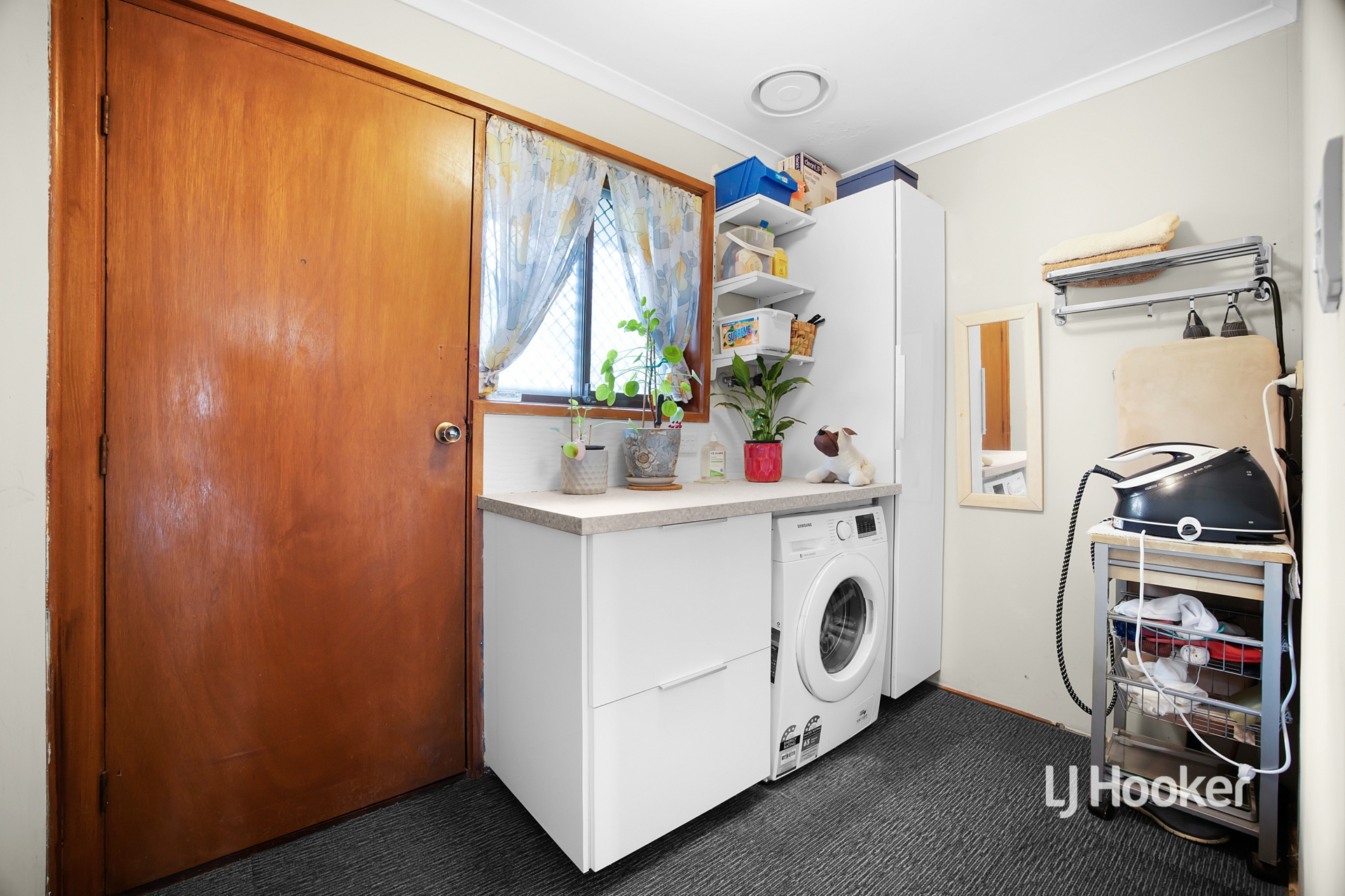 - The fully renovated laundry offers excellent functionality with additional cabinetry and storage solutions.