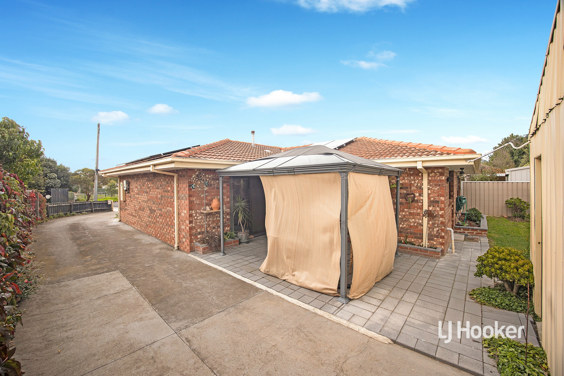 - Positioned on a 439m2 (approx.) allotment, the home features a covered pergola for year-round entertaining, a low-maintenance backyard with apple, plum, and loquat trees, a grassed area, and a dedicated shade house ideal for gardening enthusiasts.