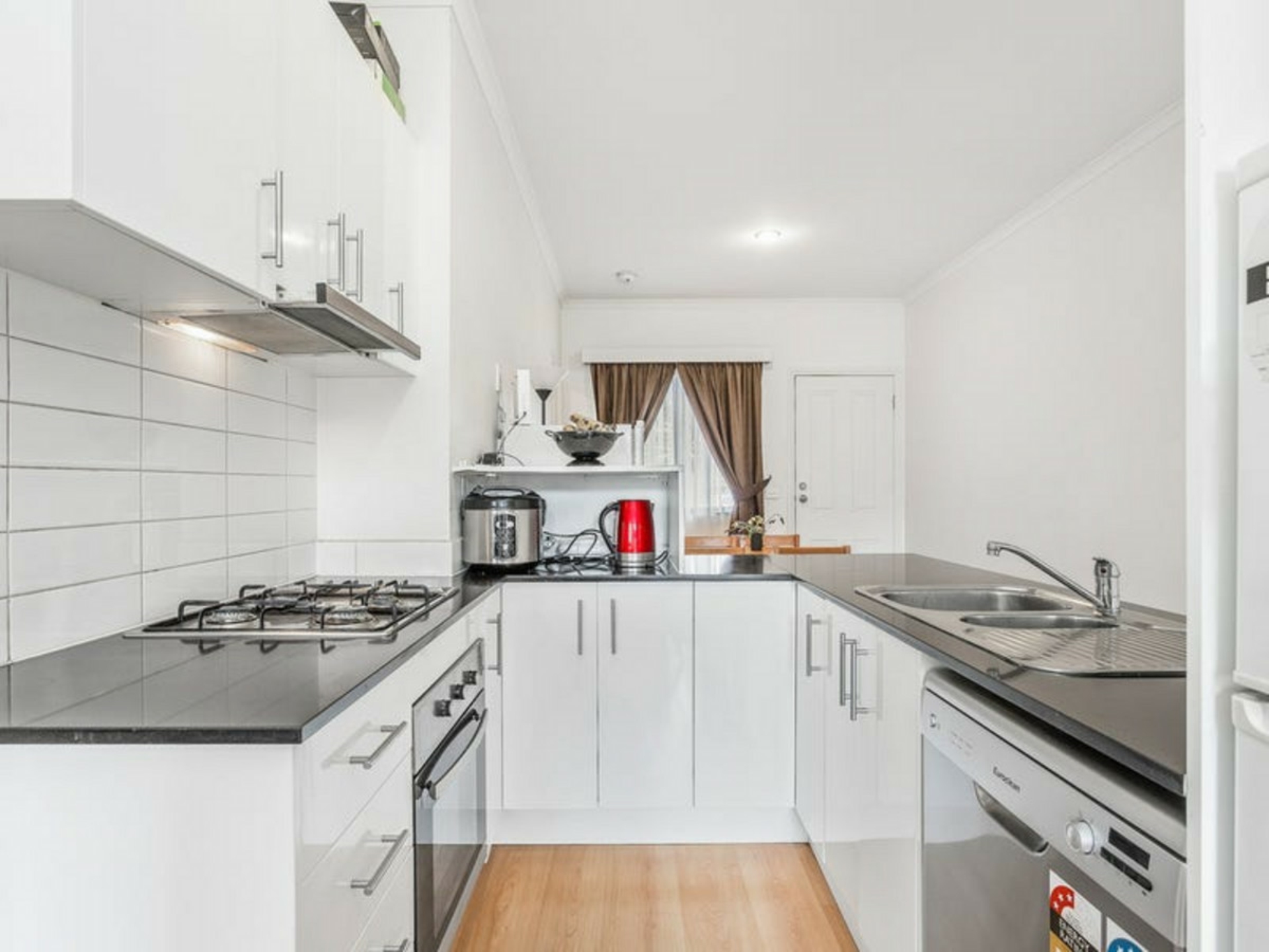 - Stone benchtops and on-trend subway tiles feature in the well-equipped, modern kitchen, which includes stainless appliances including dishwasher, rangehood and gas cooking.