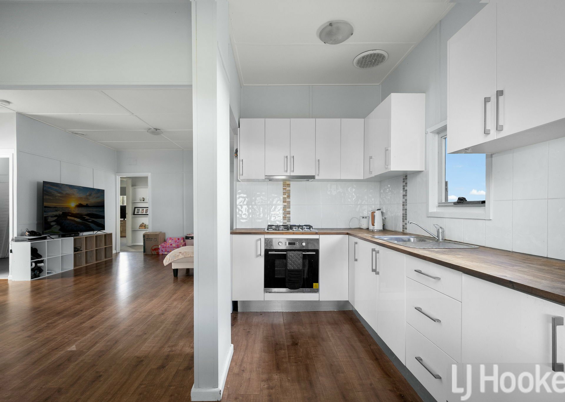 Inside, the home offers three well-sized bedrooms, each featuring built-in wardrobes, and showcases updated paint and flooring. The layout flows through to a functional kitchen complete with ample storage and generous bench space.