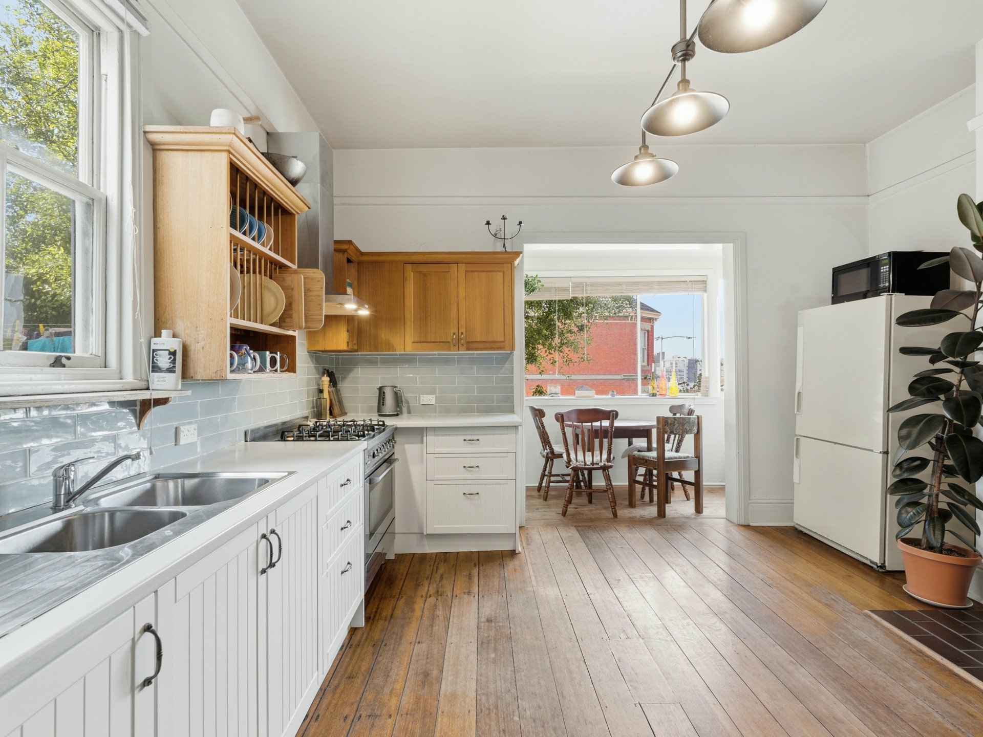 Downstairs offers multiple living zones, a renovated kitchen with genuine warmth, and a sunroom that soaks up natural light. Step through to a private courtyard that feels more European laneway than suburban backyard.