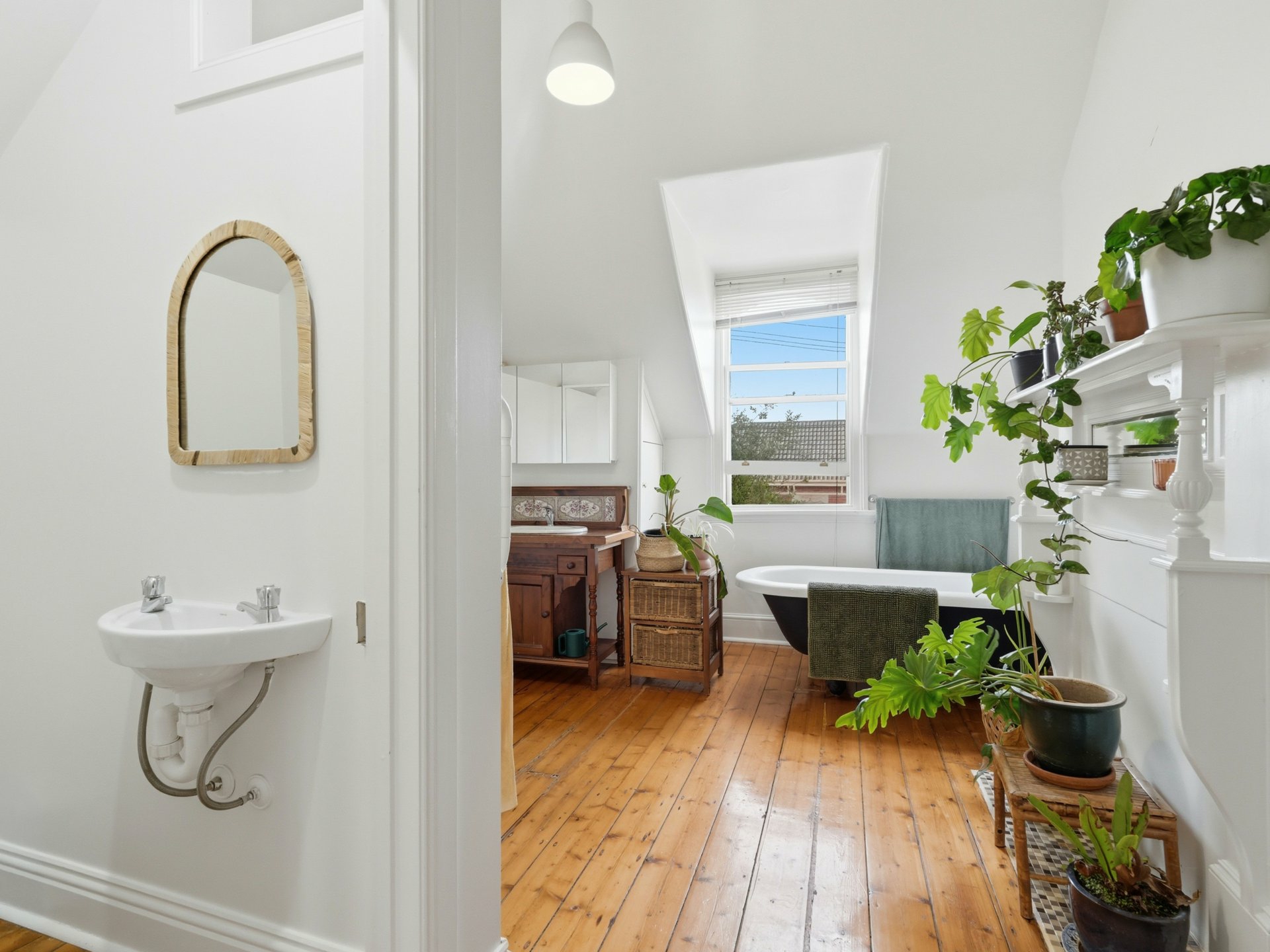 Upstairs gives you flexibility. Bedrooms, a study, and a light-filled bathroom with a claw-foot bath that looks like it belongs in a magazine... or at the very least, somewhere you pretend you have your life together.