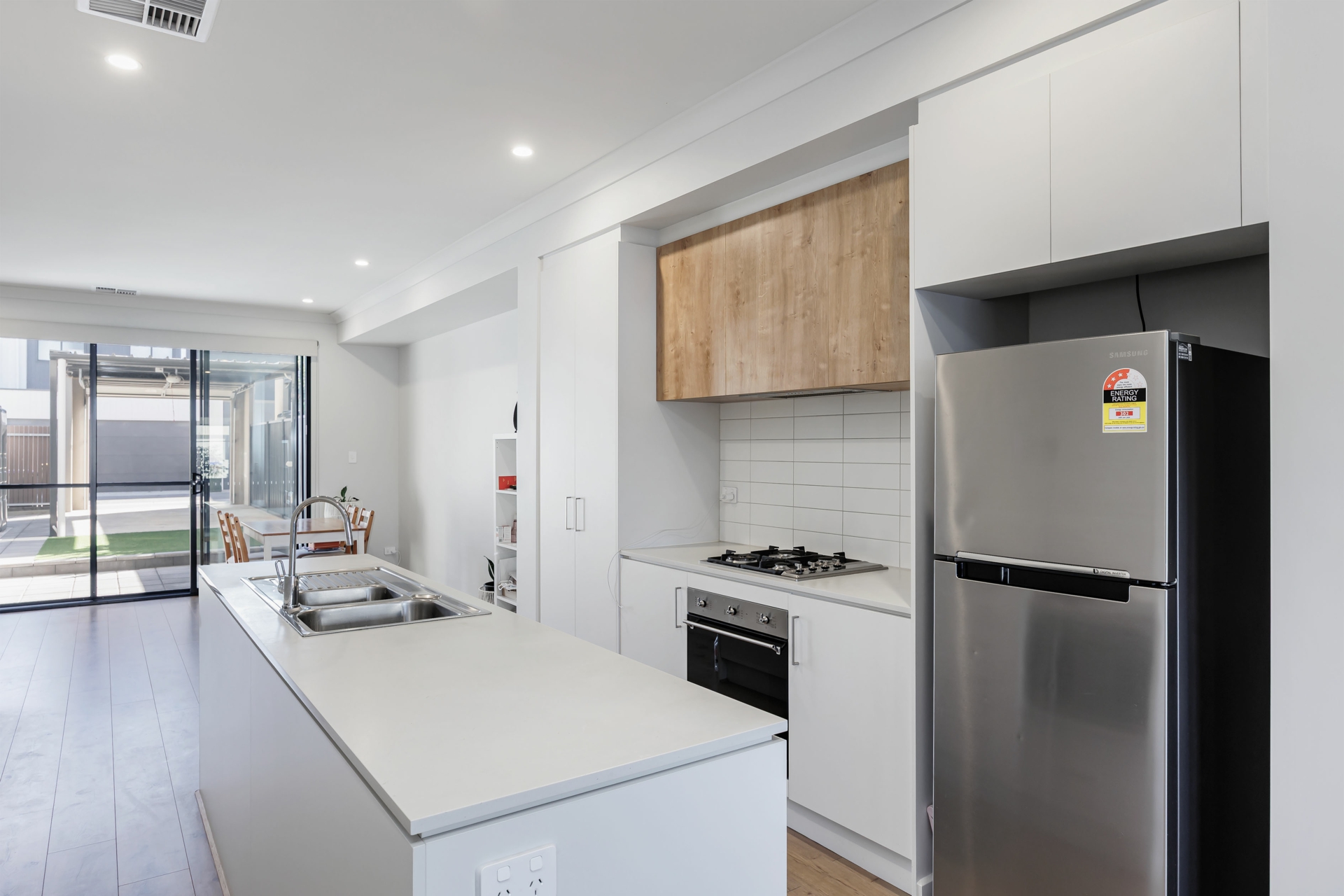 - Floating timber floorboards throughout main living areas