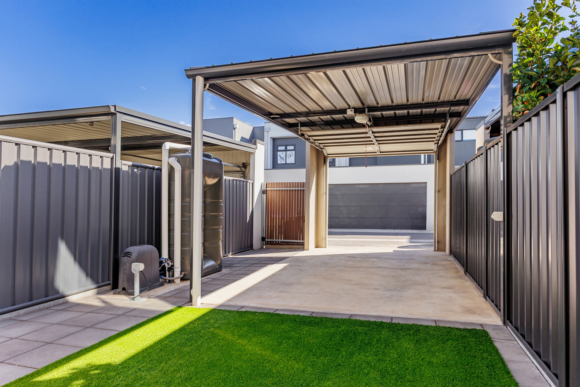 - High clearance carport with automatic roller door