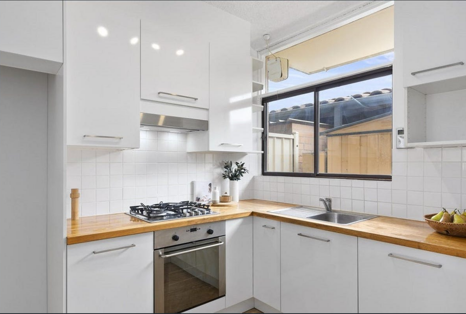 - Updated kitchen with timber benchtops, gas cooktop & dishwasher
