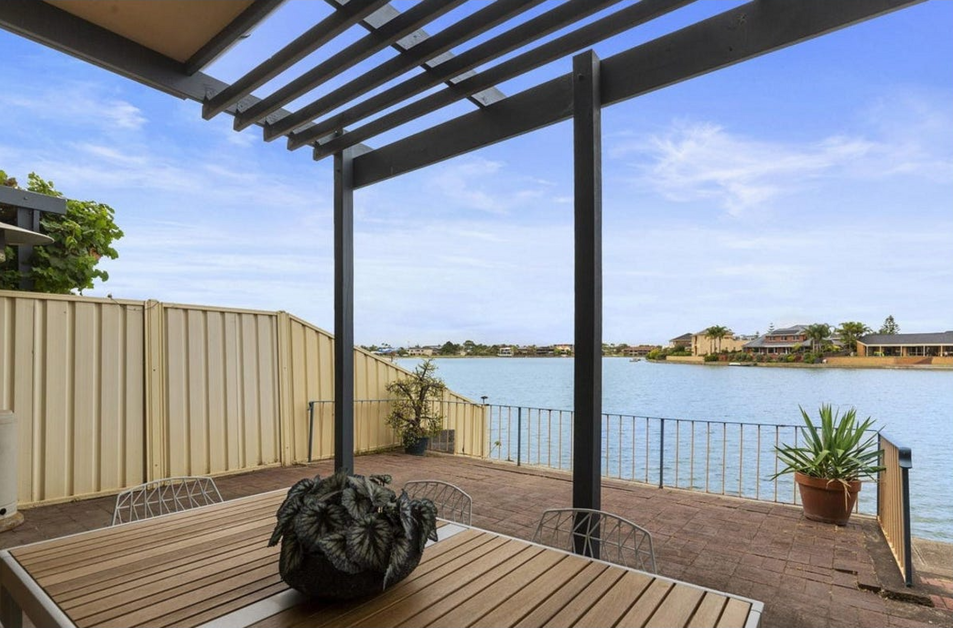 - Sliding doors to paved waterfront entertaining area with pergola