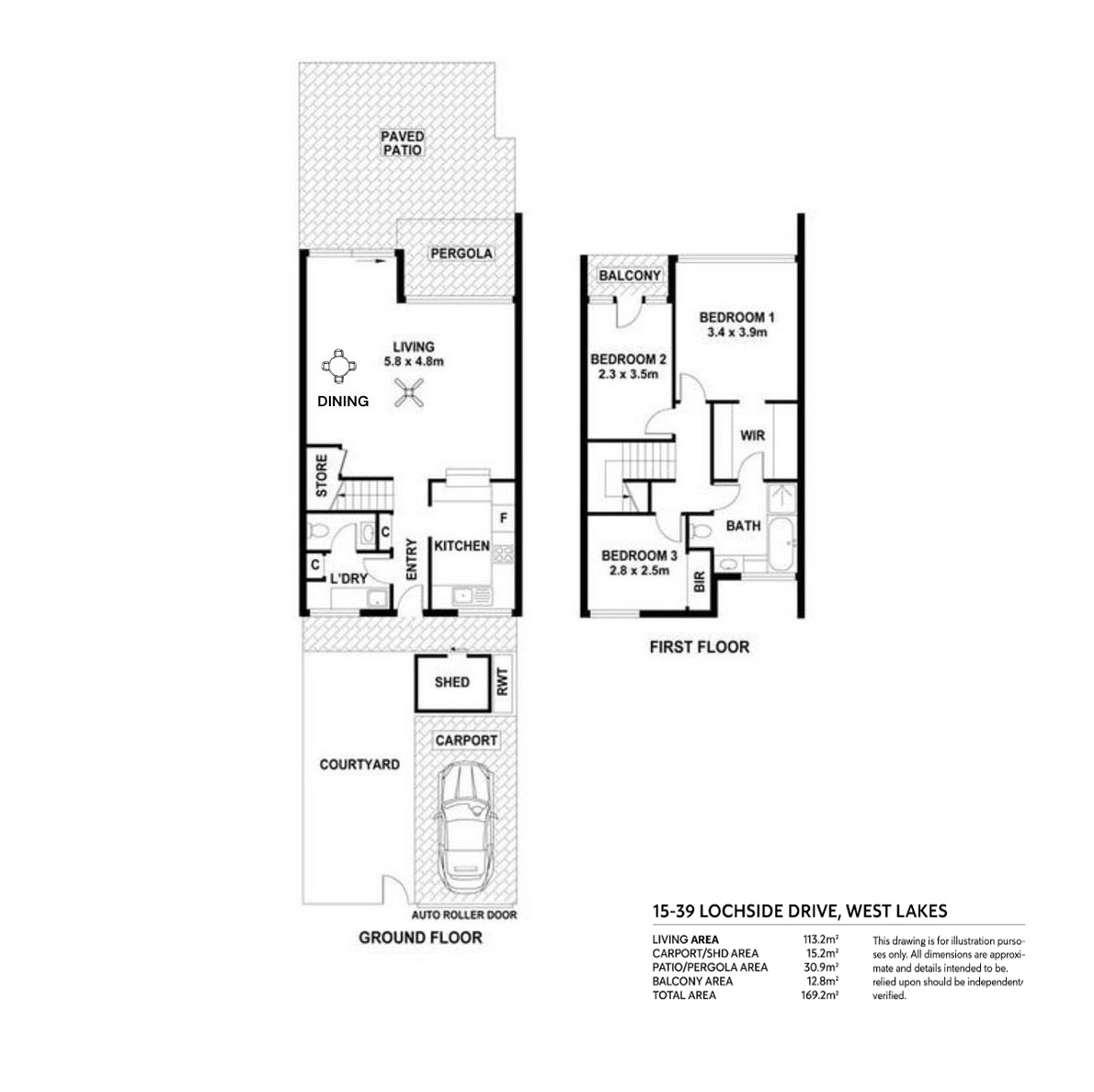 - Enclosed carport with auto roller door & second courtyard