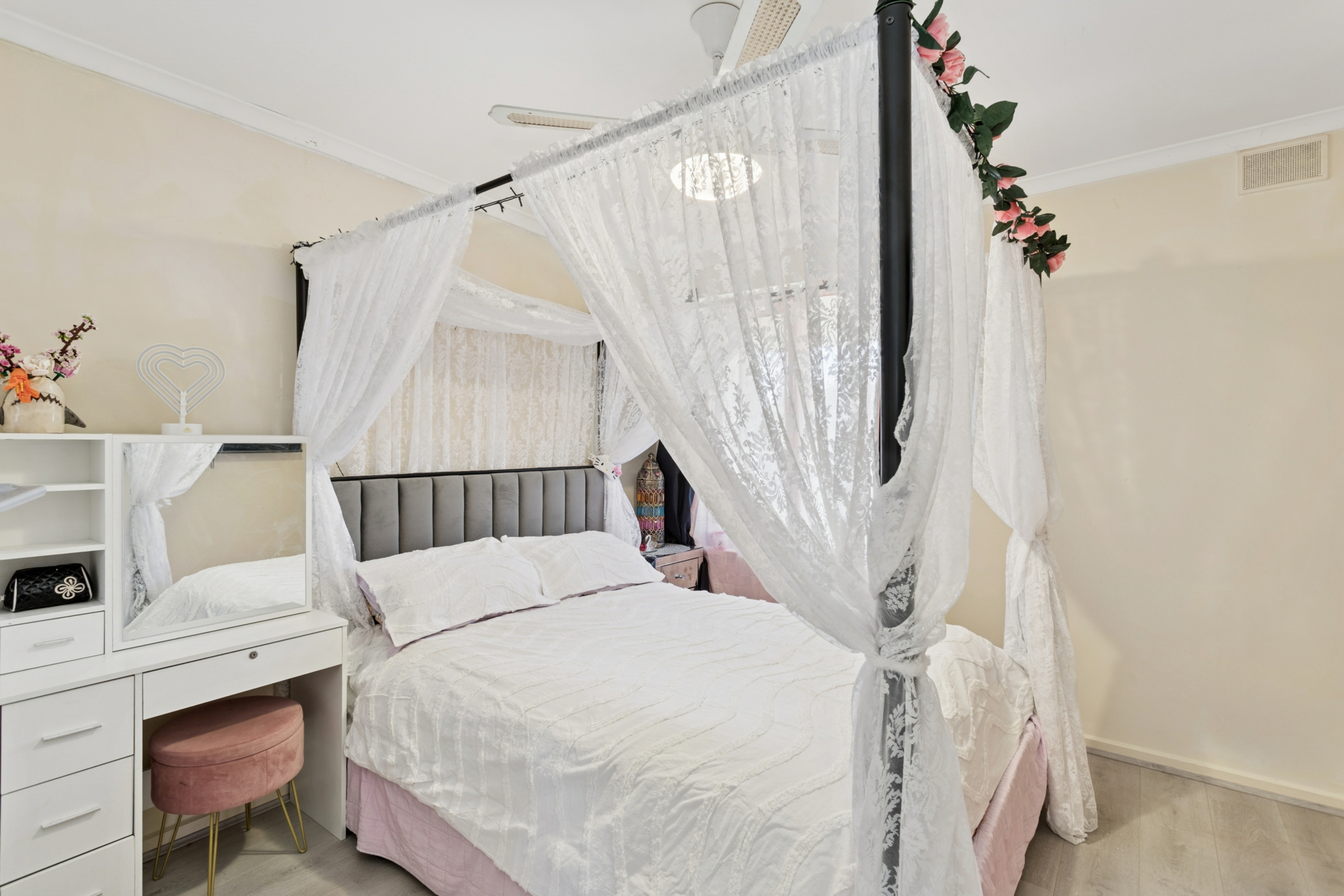 - Three bedrooms, all with built-in wardrobes and ceiling fans