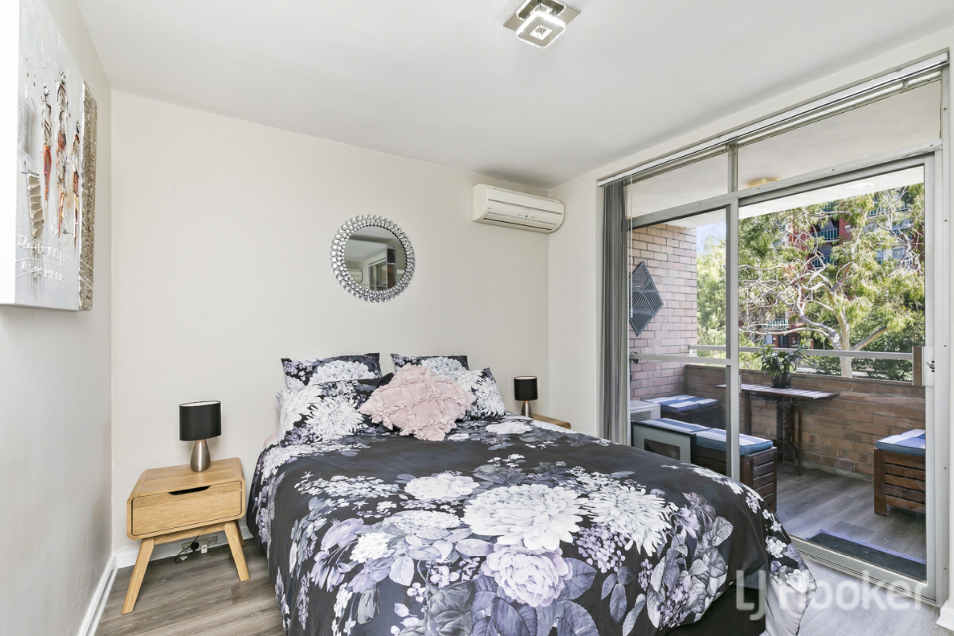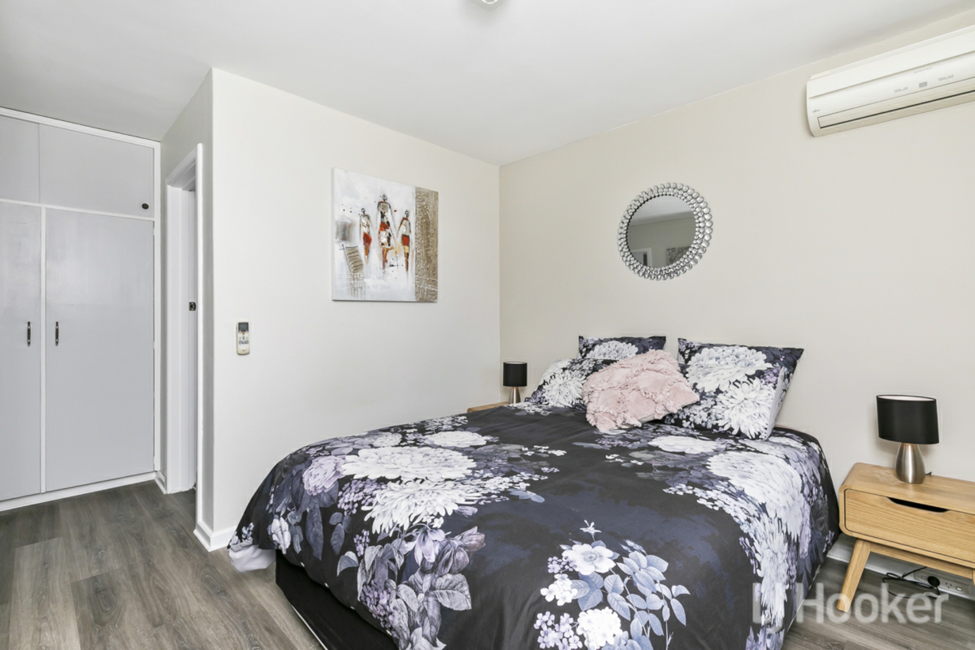 •Master bedroom, built in mirrored sliding robes, air conditioning unit and