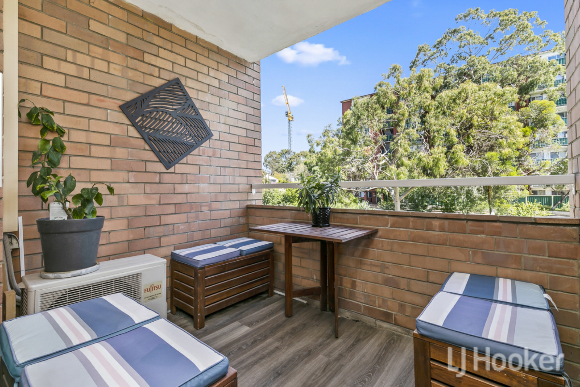With views extended off the master bedroom via sliding doors out to a private balcony with built in timber benches and continuation of the timber floors.