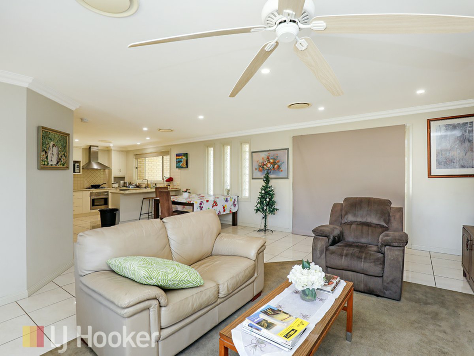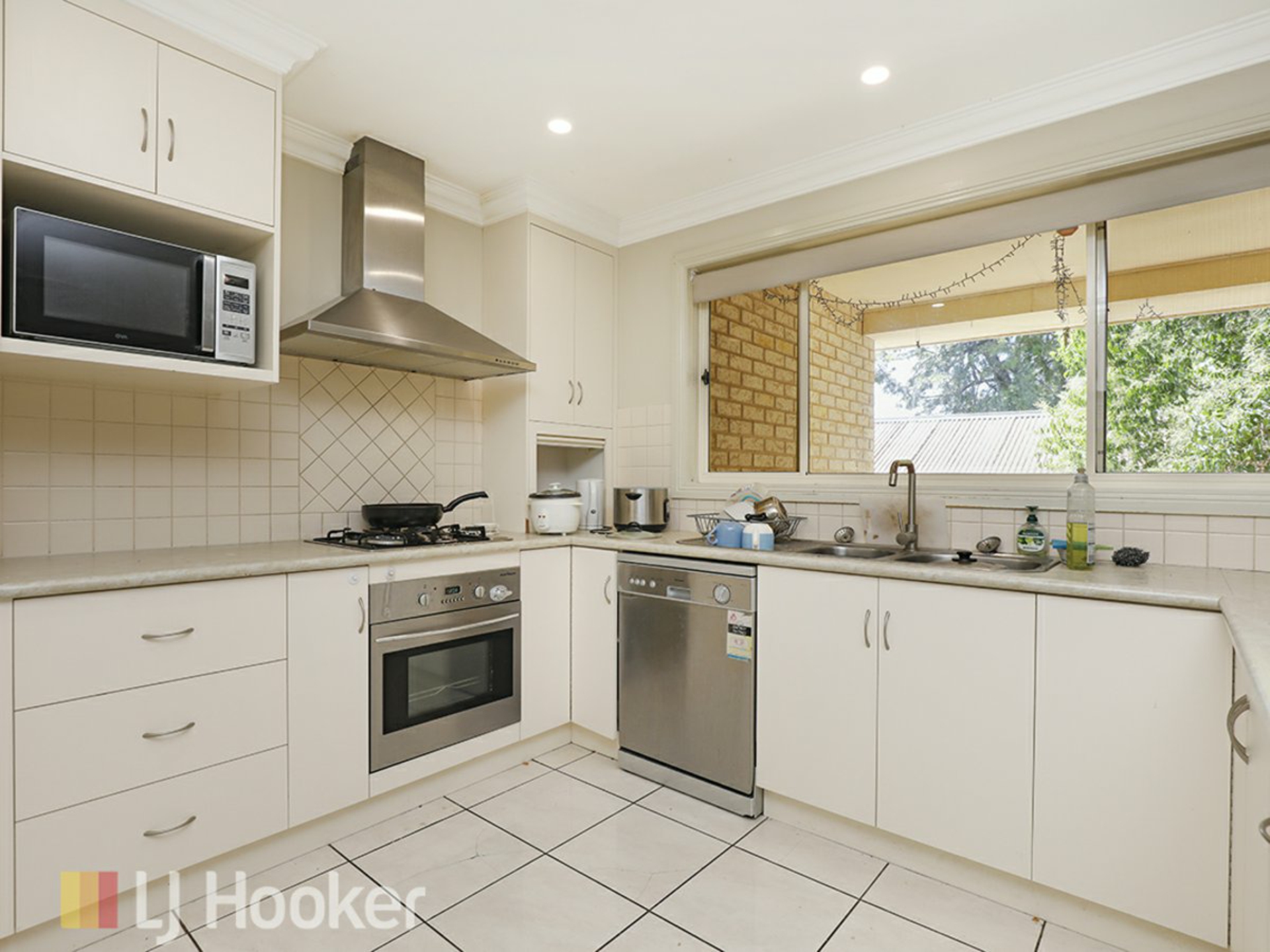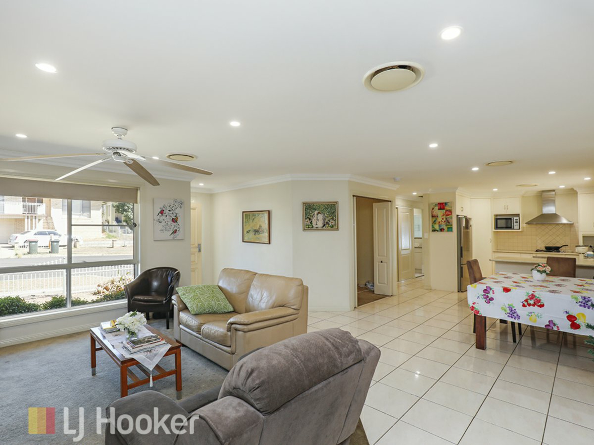The heart of the home features a light-filled living and dining space, complemented by ducted reverse cycle air conditioning and ceiling fans to ensure comfort in every season. The well-equipped kitchen includes gas cooking, ideal for those who enjoy both everyday convenience and entertaining.