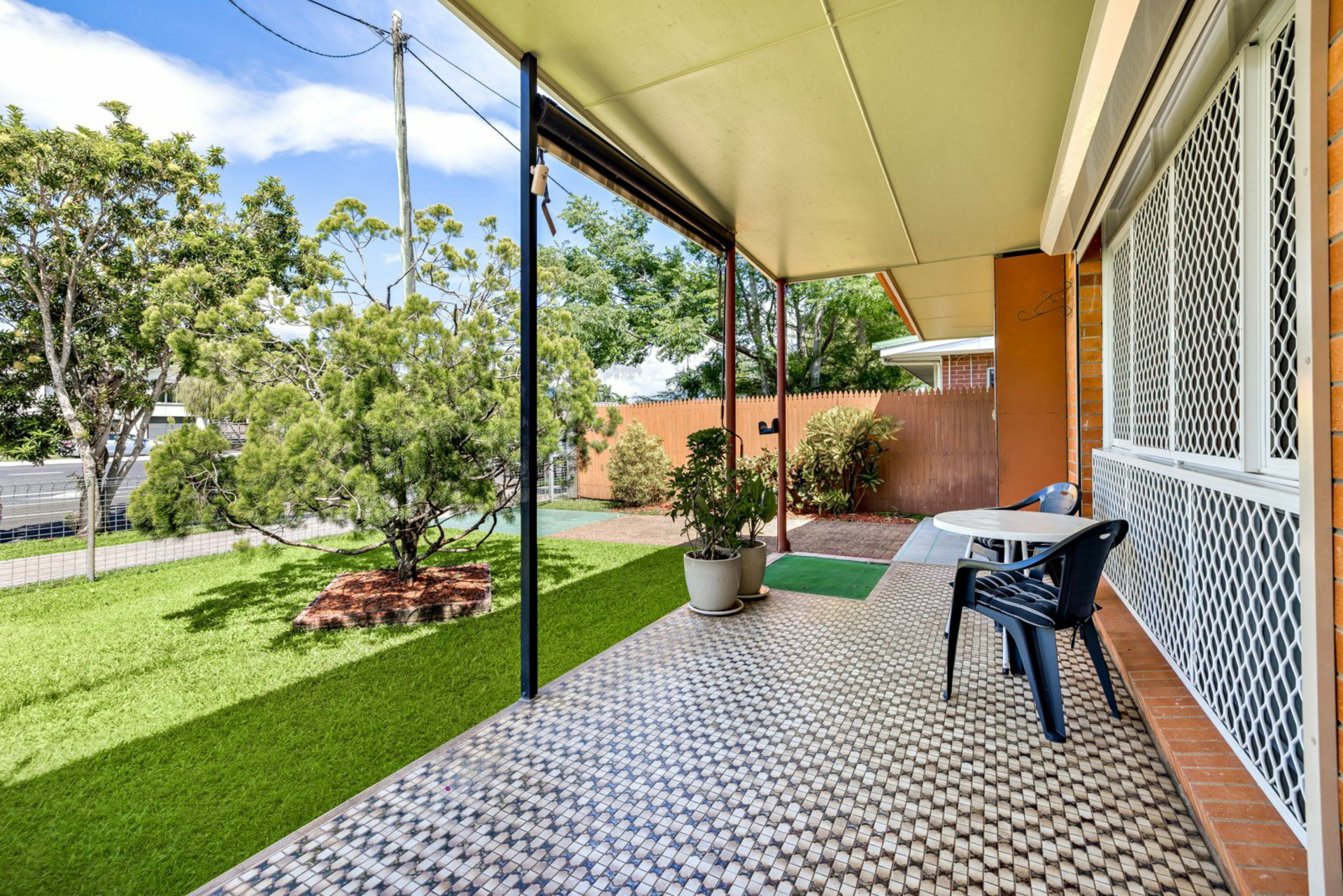 Practical features include air-conditioning, security screens, automated cyclone shutters, internal laundry and 1.5kW of solar power.
