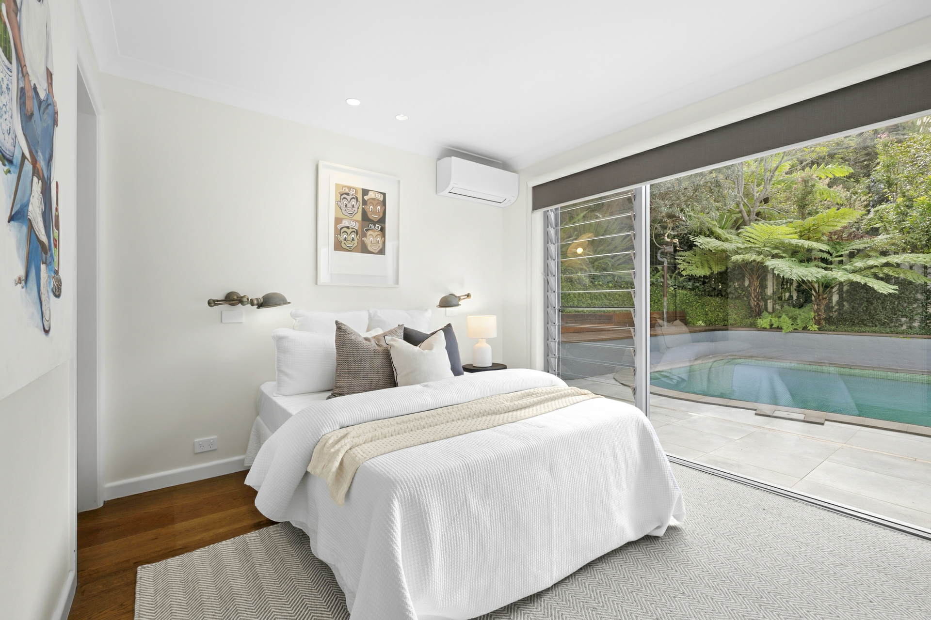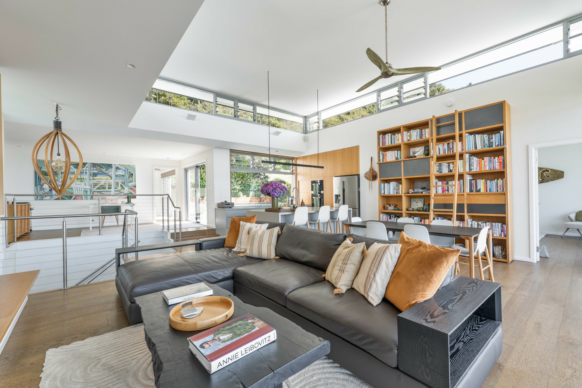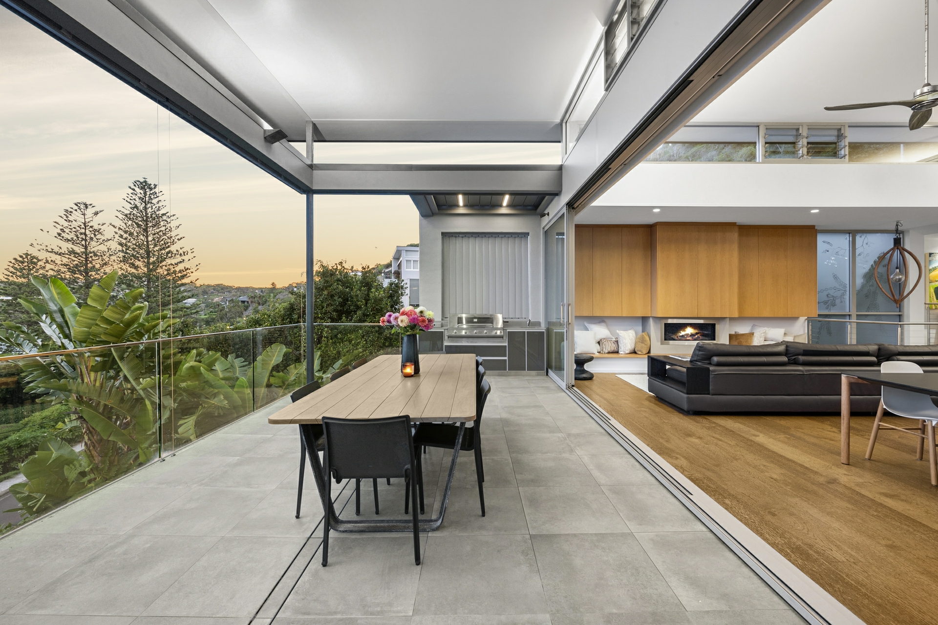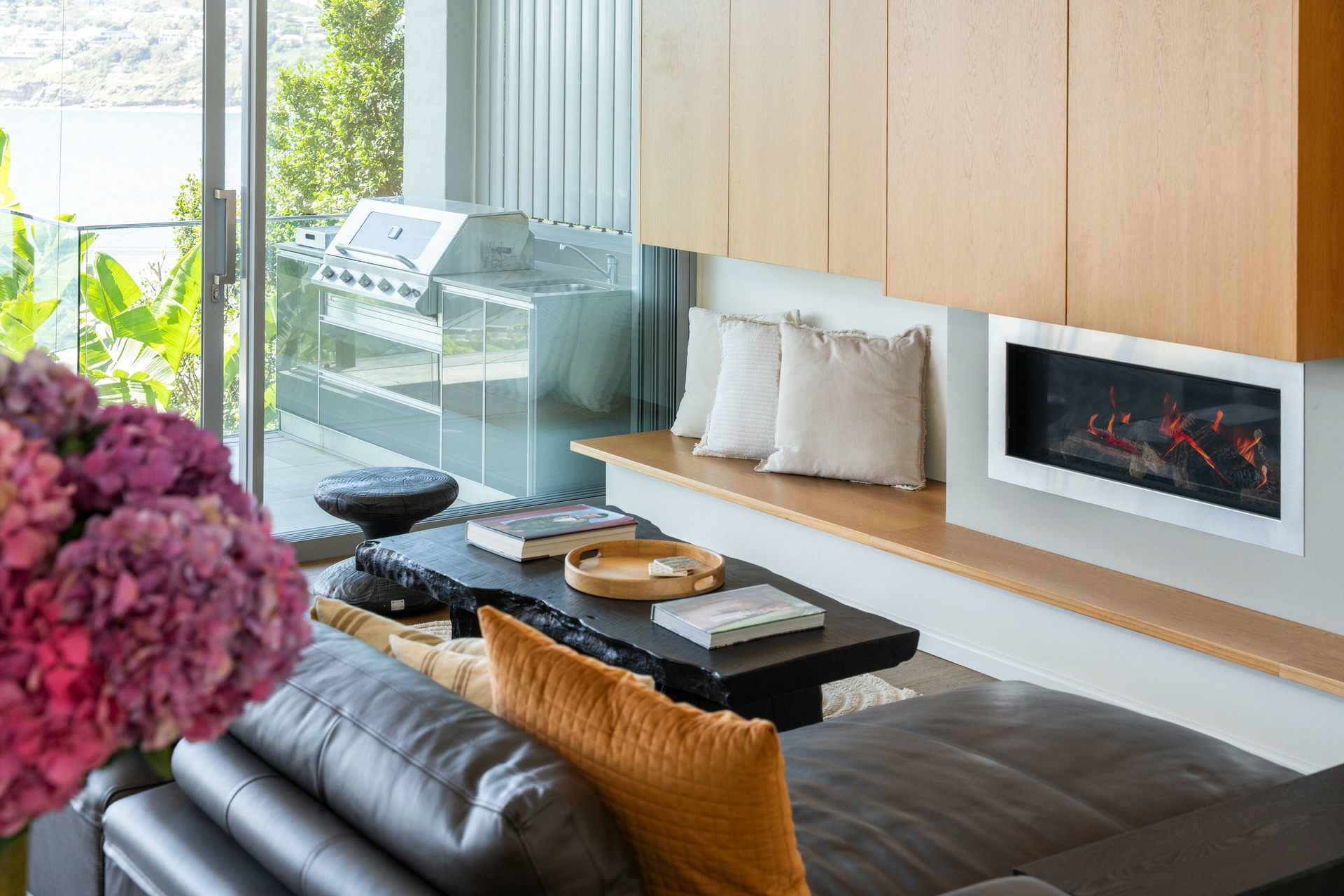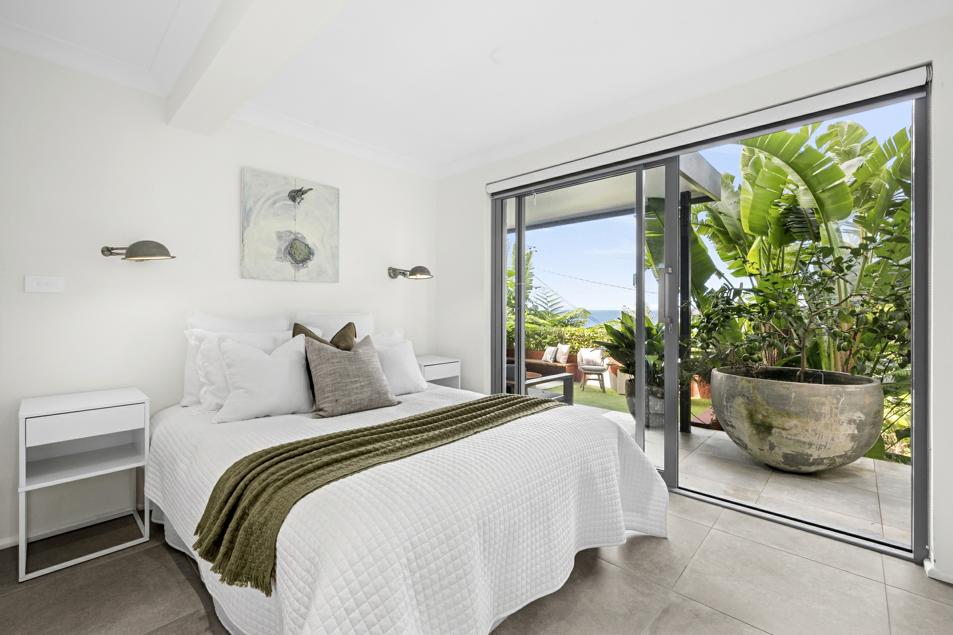 Comprehensively renovated in 2018 by TKD Architects, the residence presents as a refined coastal retreat defined by strong architectural lines, volume and light. The interiors are intentionally restrained, pairing clean geometry with a subtle, natural palette to create a timeless aesthetic that feels both contemporary and calm. Four-metre ceilings amplify the sense of space, while walls of glass and clerestory windows capture natural light throughout the day and frame the ever-changing seascape beyond.