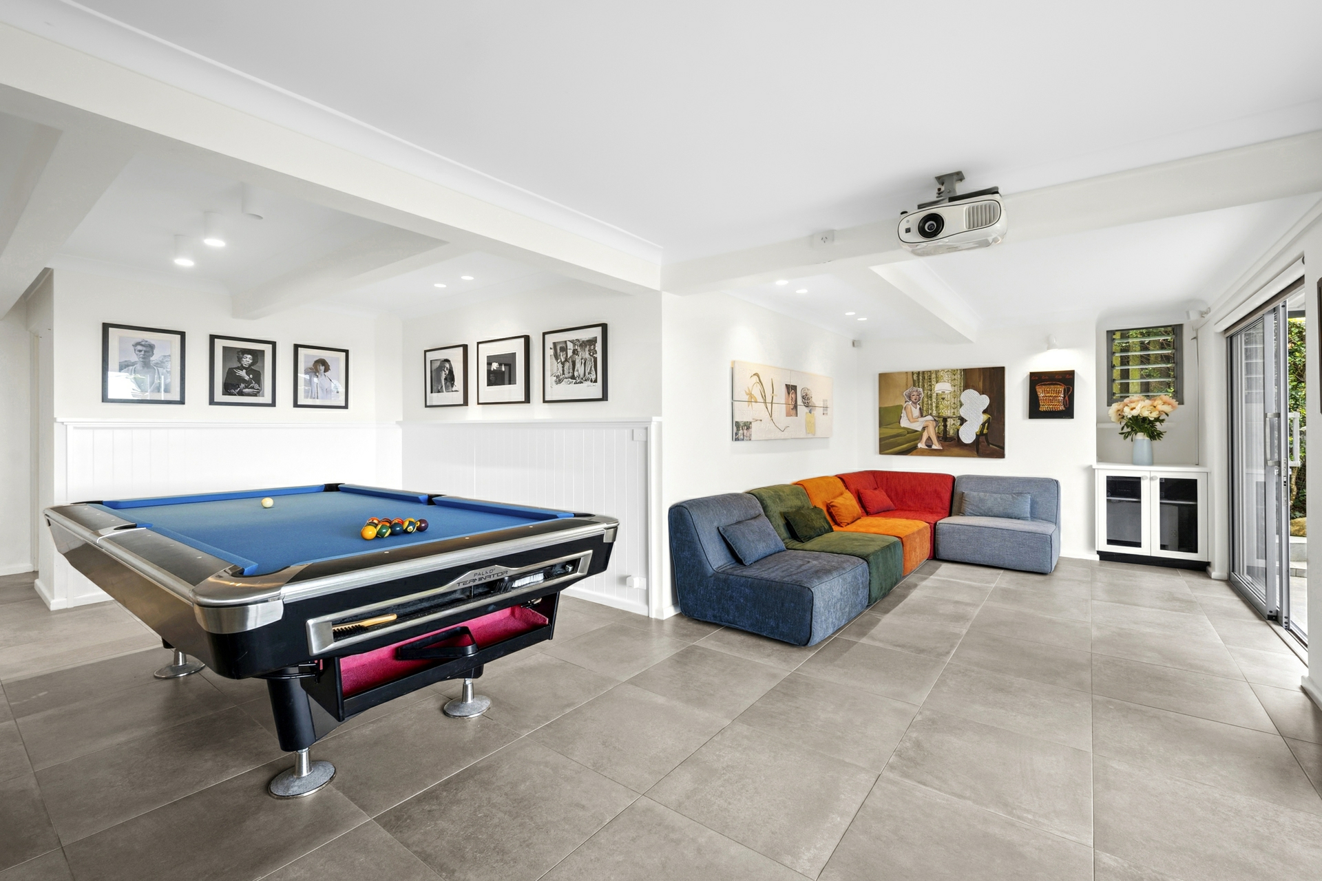 The main living level unfolds in a seamless open-plan arrangement, extending to an ocean-facing terrace that functions as a true outdoor living room. Designed for both entertaining and everyday living, the home offers flexibility across two levels, including dedicated spaces for family living, recreation and media.