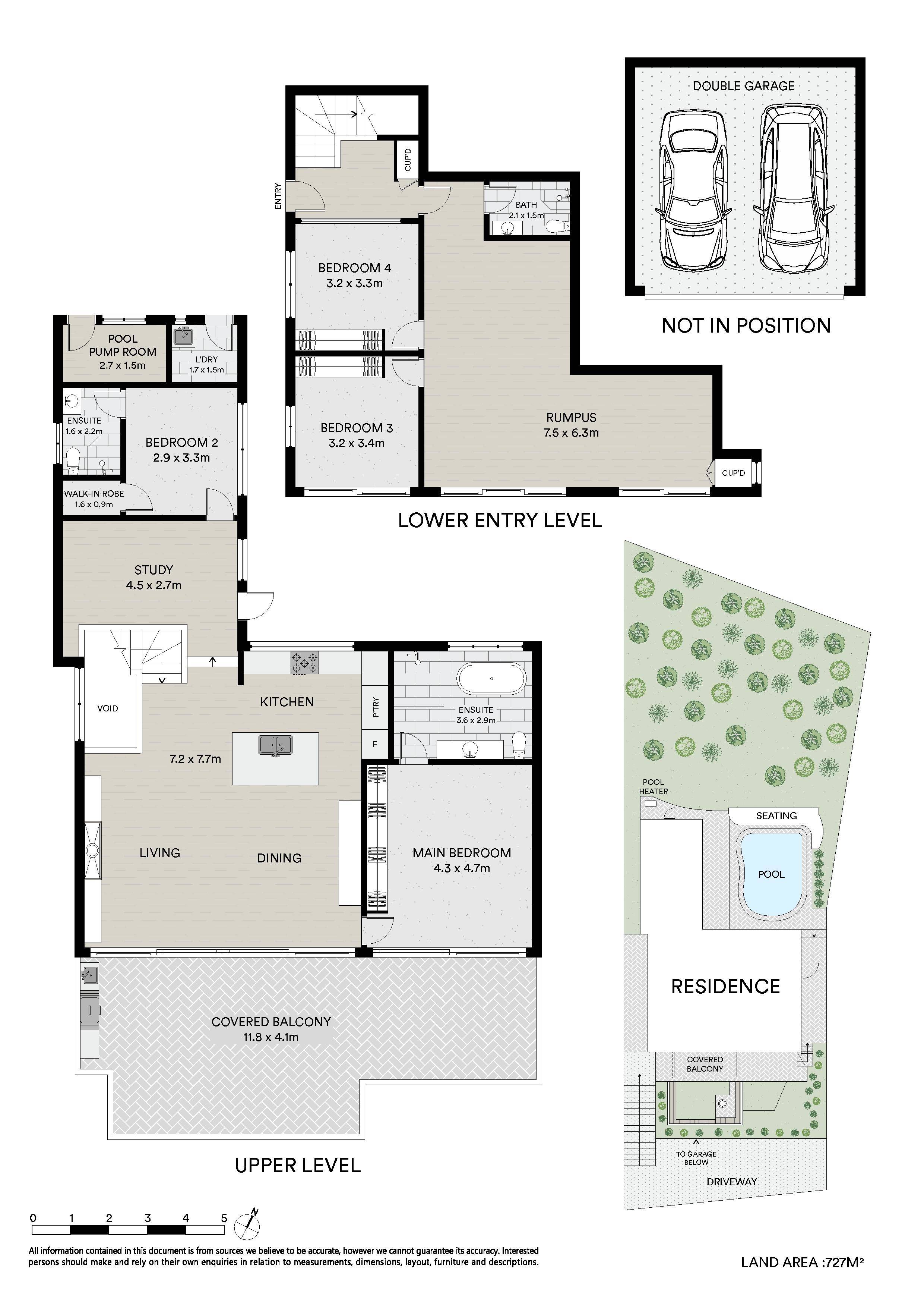 - Guest bedroom with ensuite; custom joinery to all bedrooms