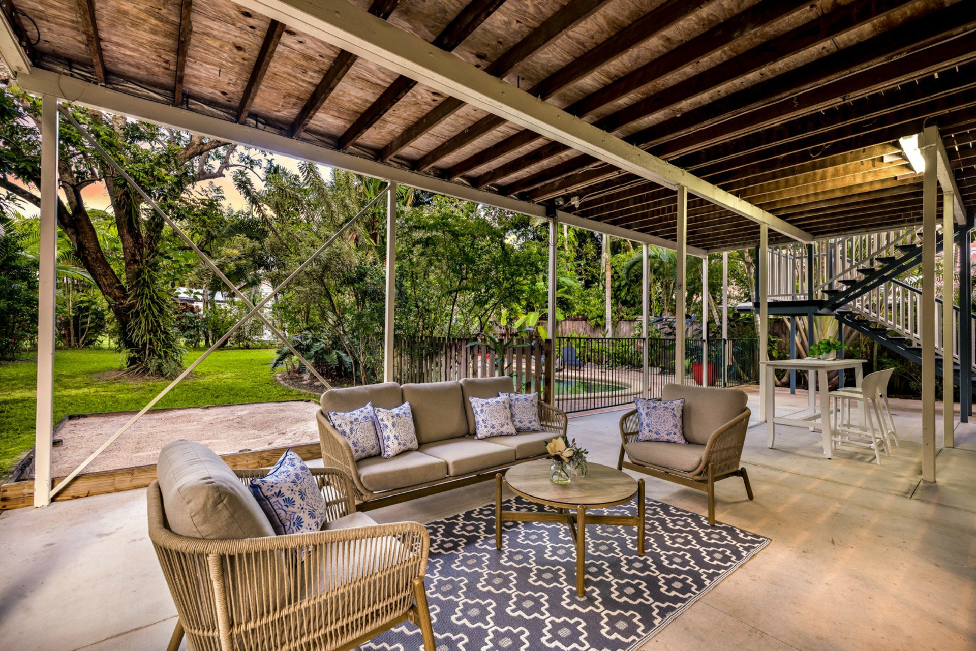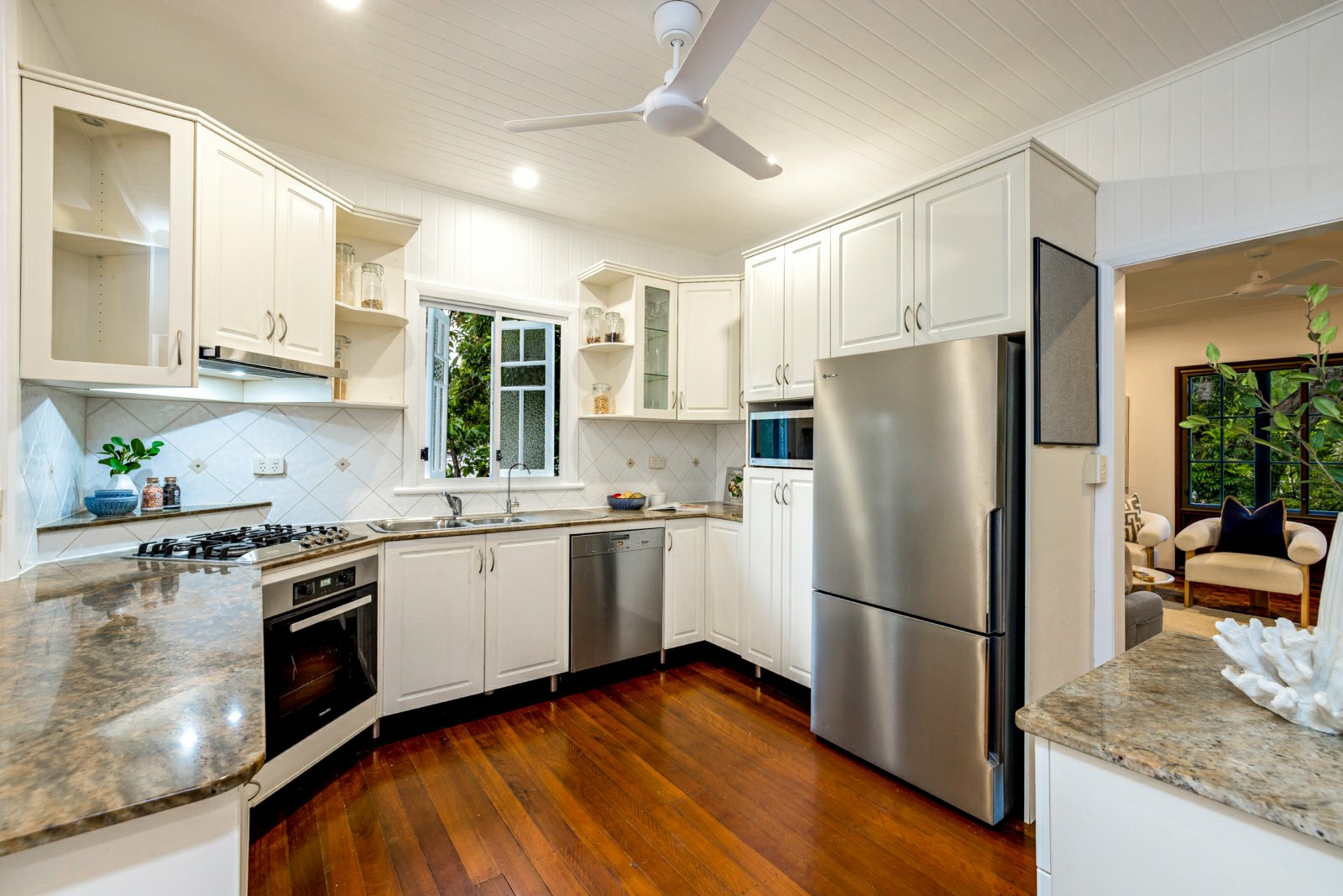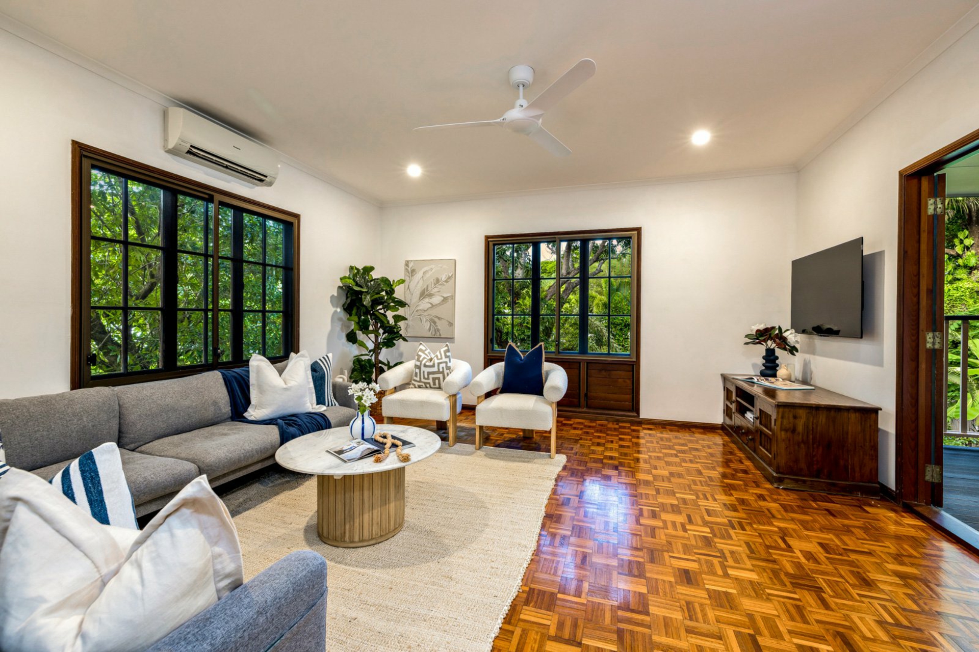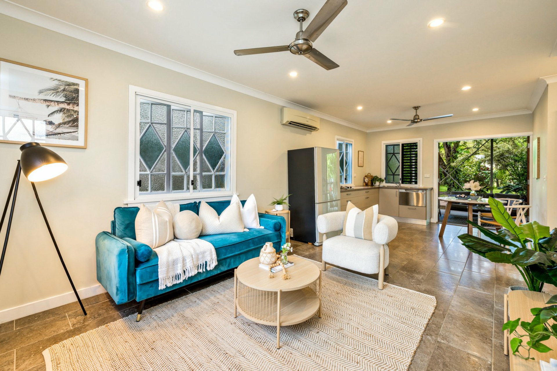 Raised and extended to maximise space and lifestyle, the home offers effortless indoor outdoor living and entertaining across both levels. Cool breezes and abundant natural light flow throughout, enhancing the relaxed tropical ambiance.
