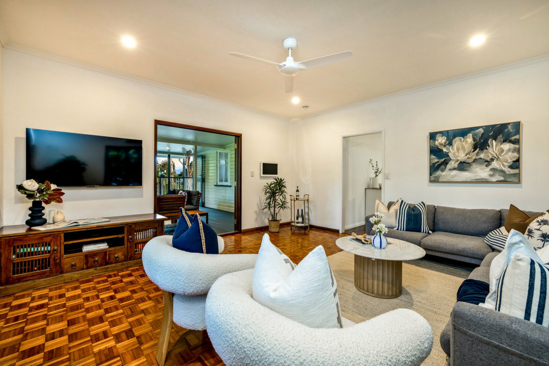 Double storey Queenslander with impressive street appeal on a level fully fenced 809m² allotment, with interiors that seamlessly blend timeless character with contemporary comfort.
