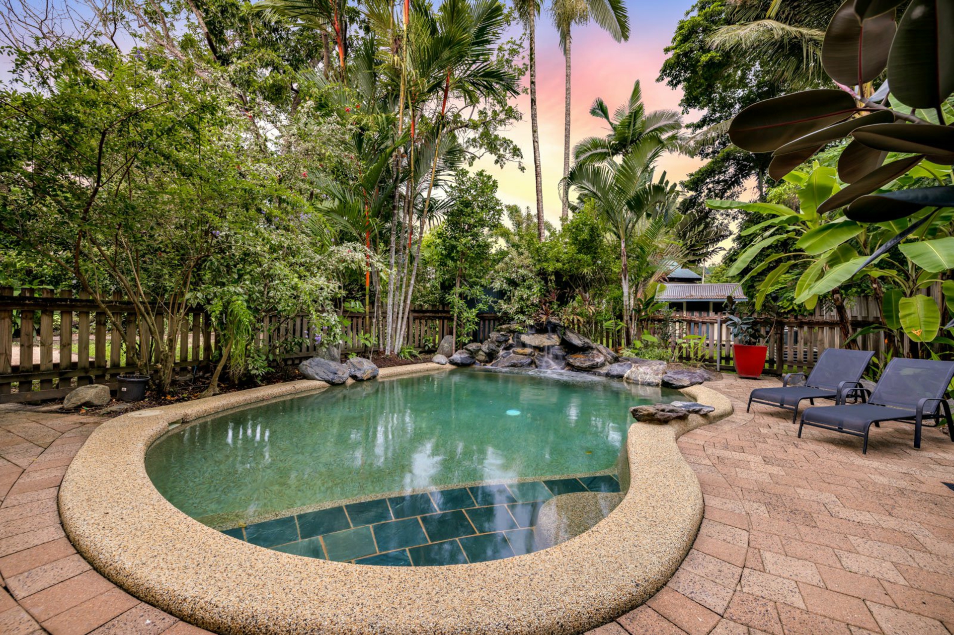 Outdoors, the landscaped grounds showcase established tropical gardens, sprawling lawn area and a separately fenced, private lagoon-style in ground pool complete with waterfall and current pool safety certification, creating a private resort style retreat at home.