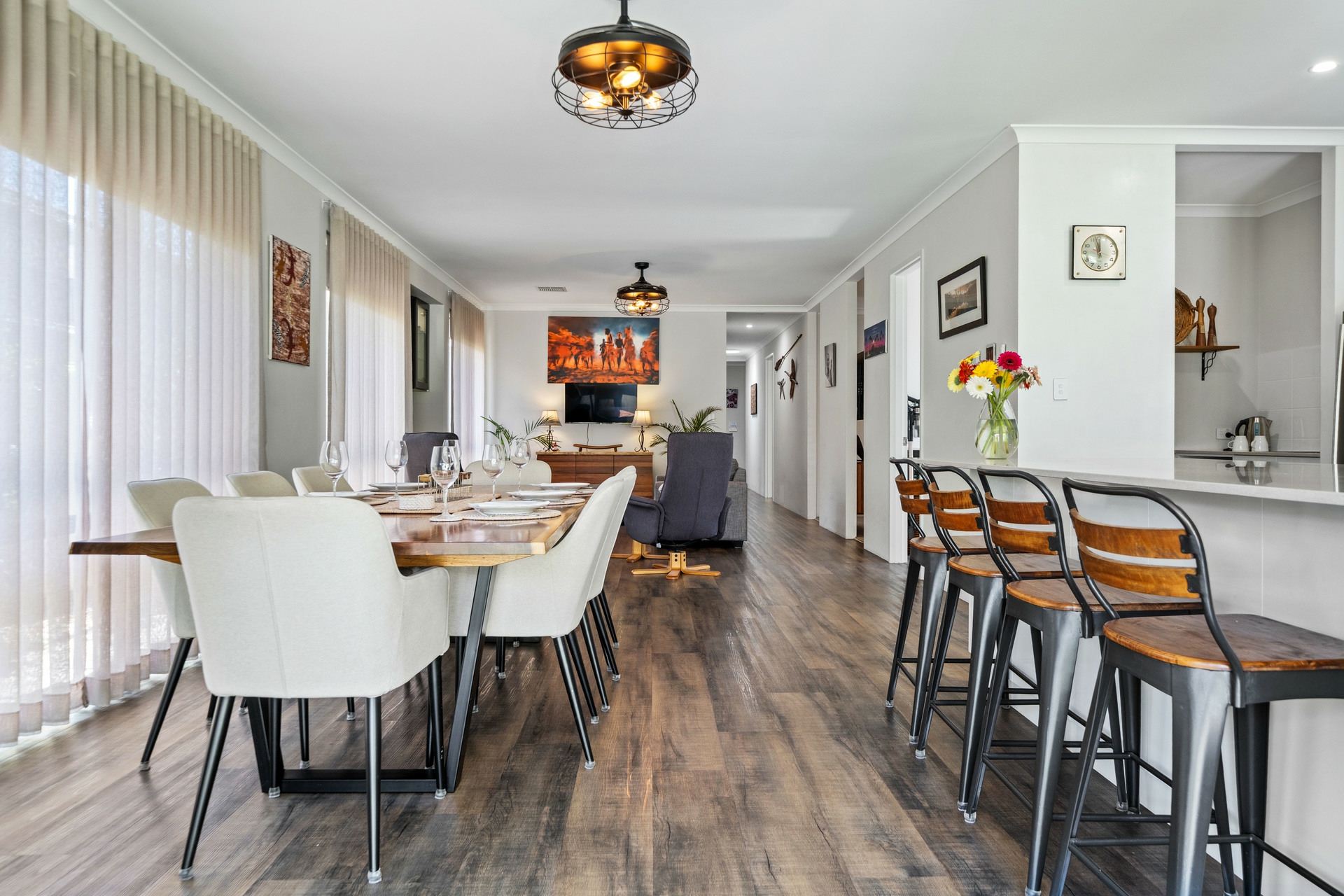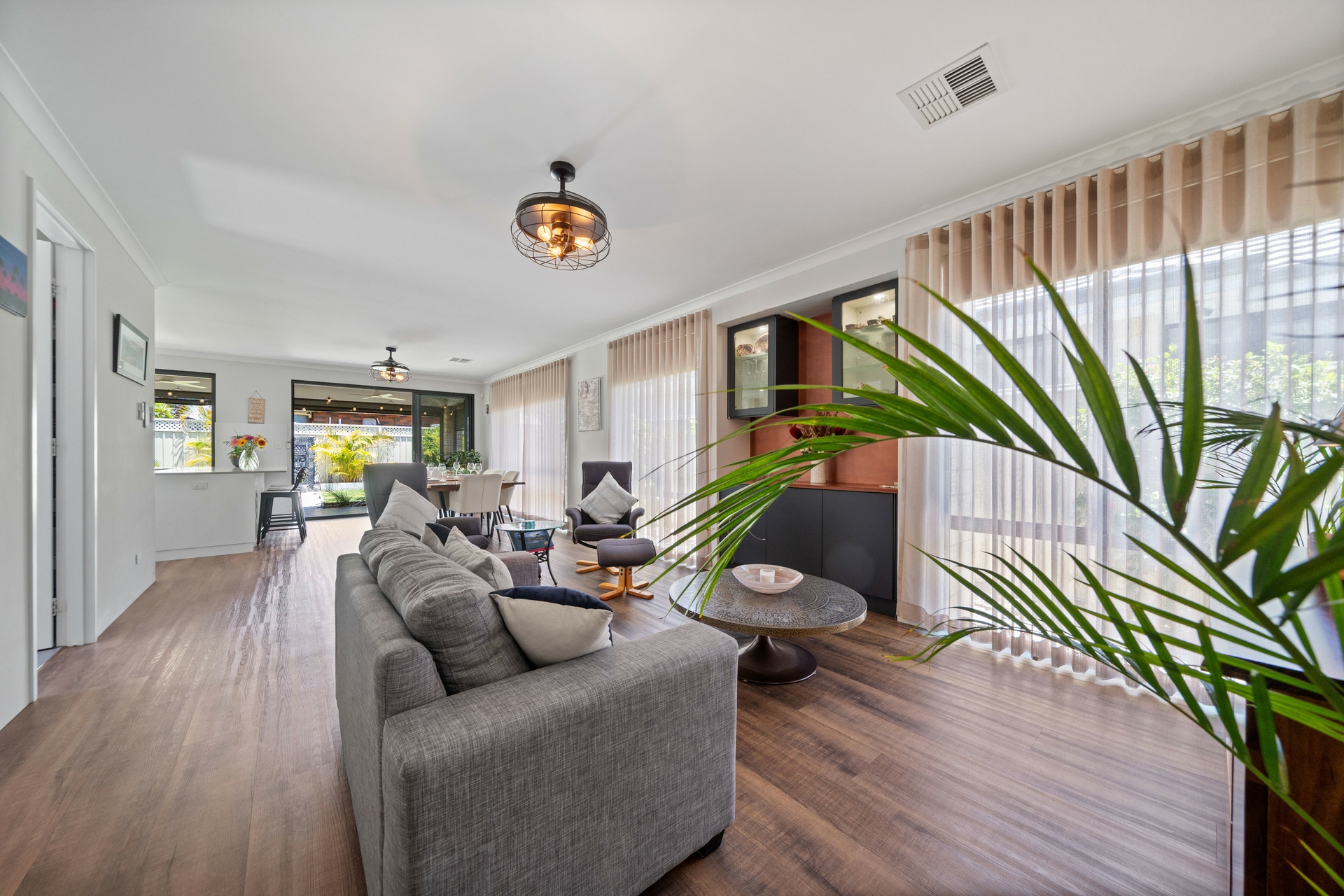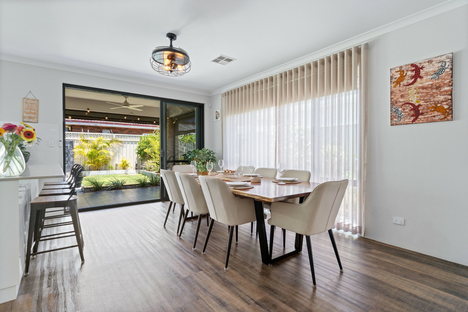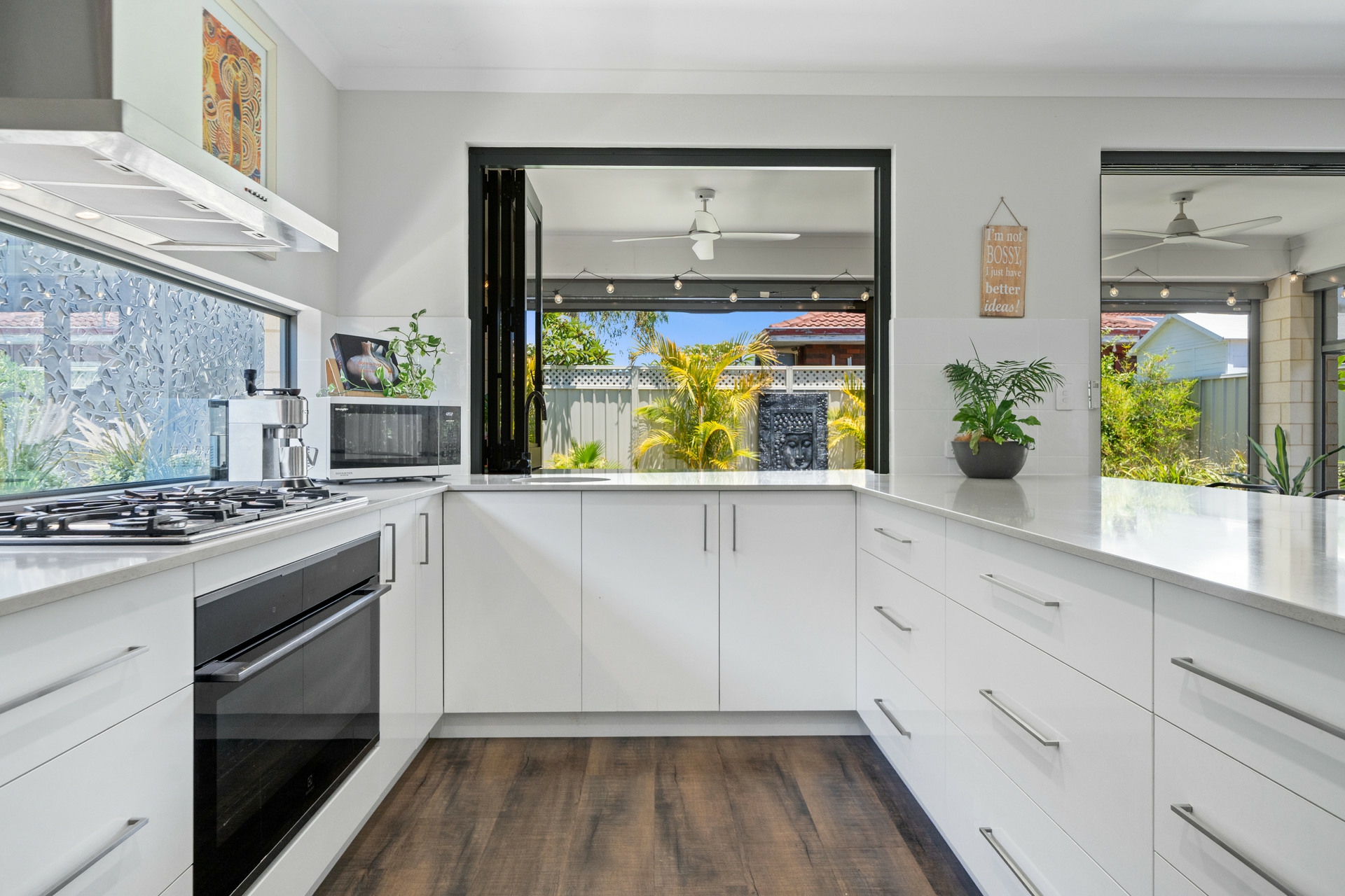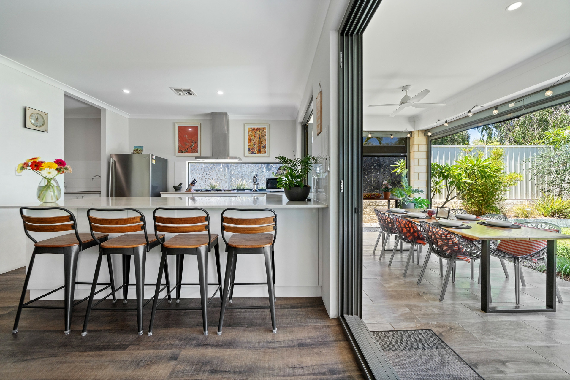 •Seamless Indoor-Outdoor Flow: Bifold windows in the kitchen and sliding doors in the dining area open completely to the alfresco, creating a perfect integration for entertaining.