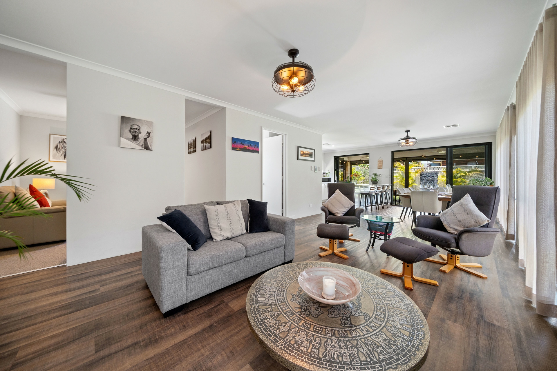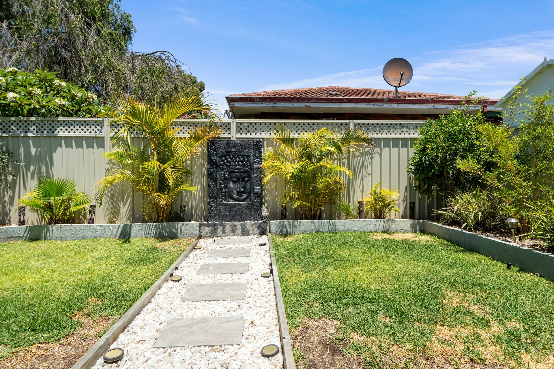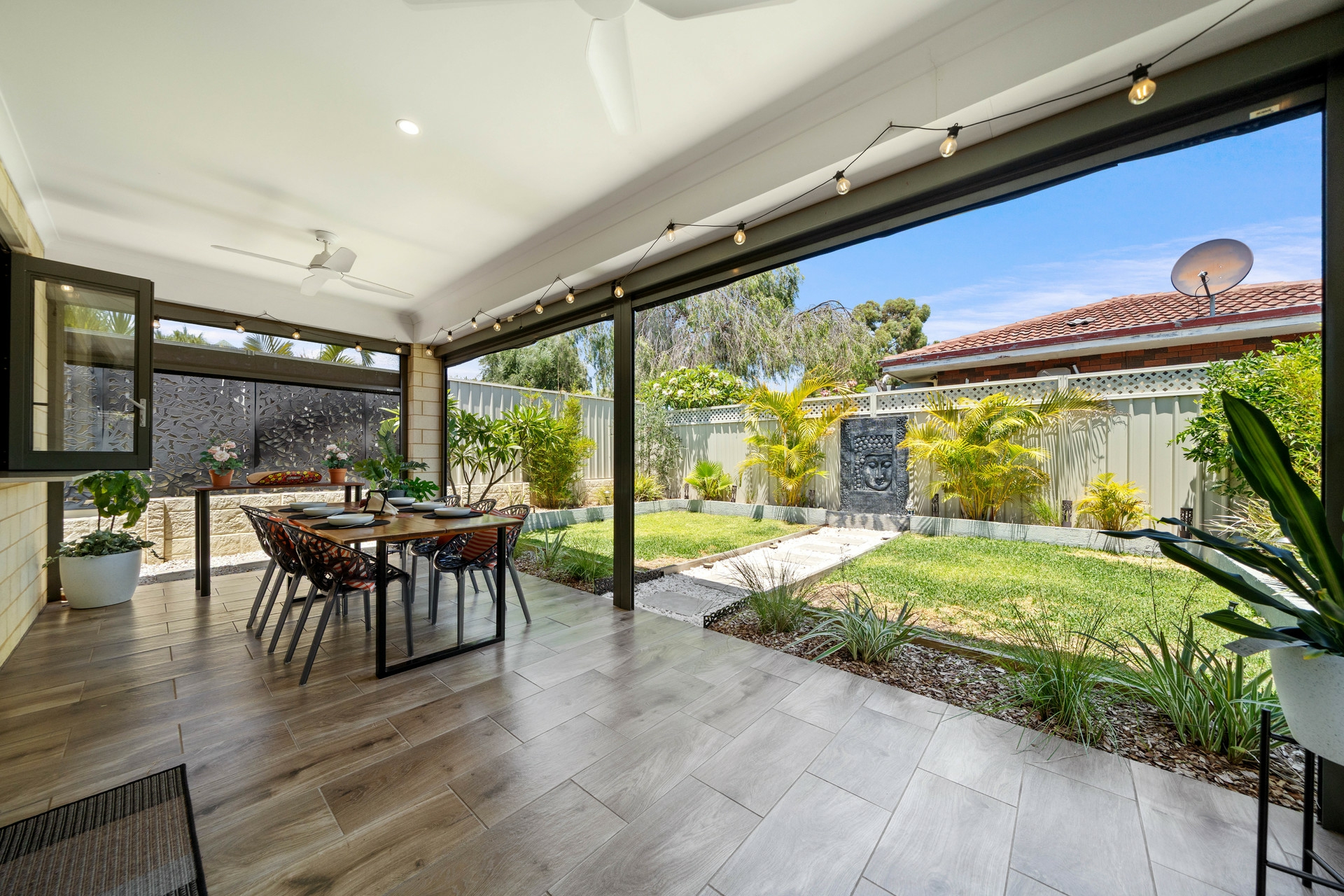 Designed for year-round enjoyment, the alfresco area can be enclosed with automated zip-track blinds, making it ideal for gatherings in any season. Outside, the magnificent, easy-care garden delights with a serene water feature and beautiful established garden, creating a private, Zen-like oasis.