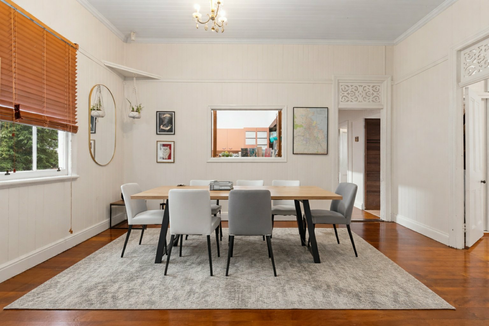 Inside, character features shine throughout, including VJ walls, polished timber floors, soaring ceilings and ornate detailing. The floorplan delivers light-filled living and dining areas, a well-appointed kitchen with gas cooking and a handy servery window, plus two generous bedrooms and a versatile third room ideal as a home office or nursery. A renovated main bathroom adds modern comfort.