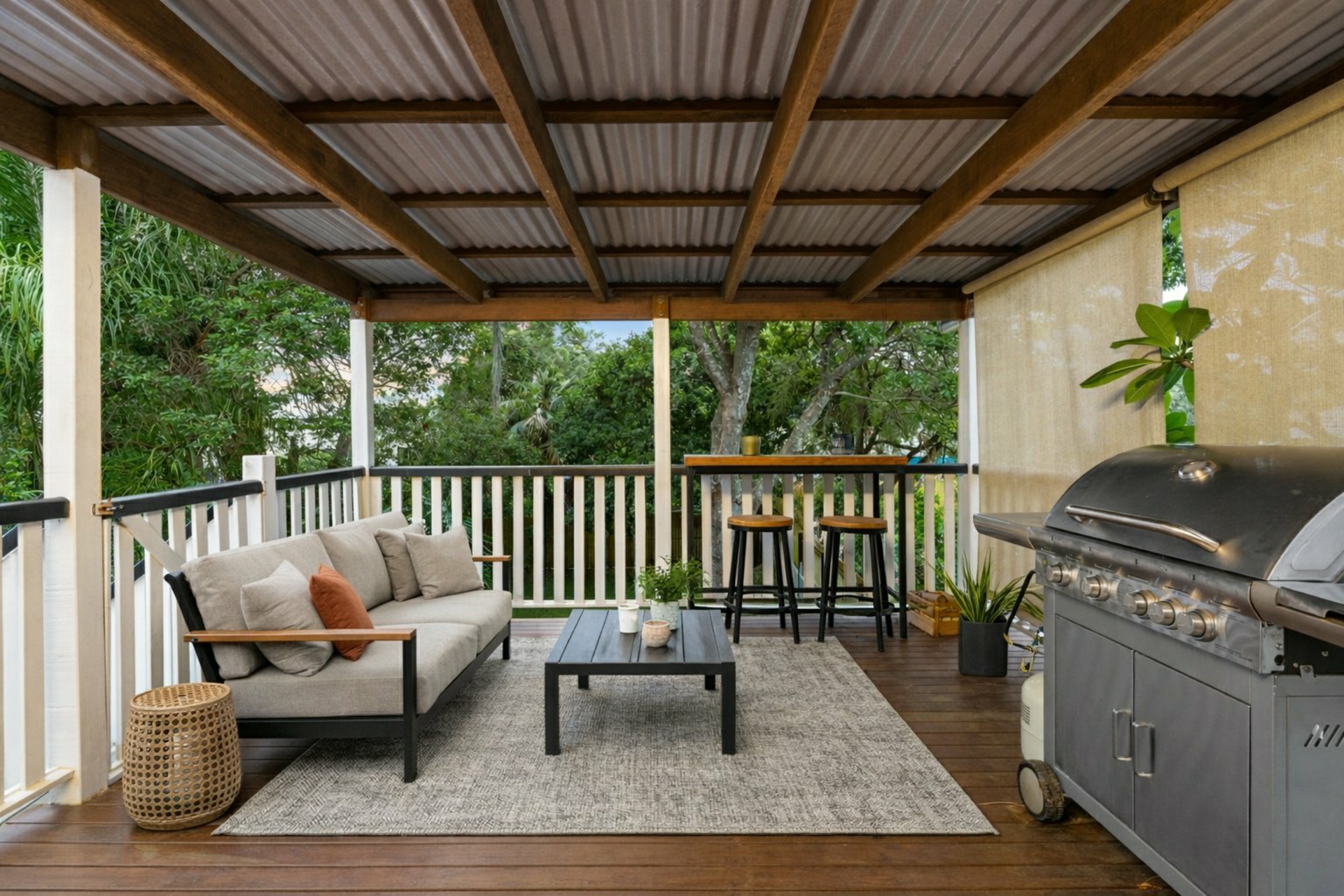 Covered rear deck with leafy yard aspect, perfect for alfresco dining