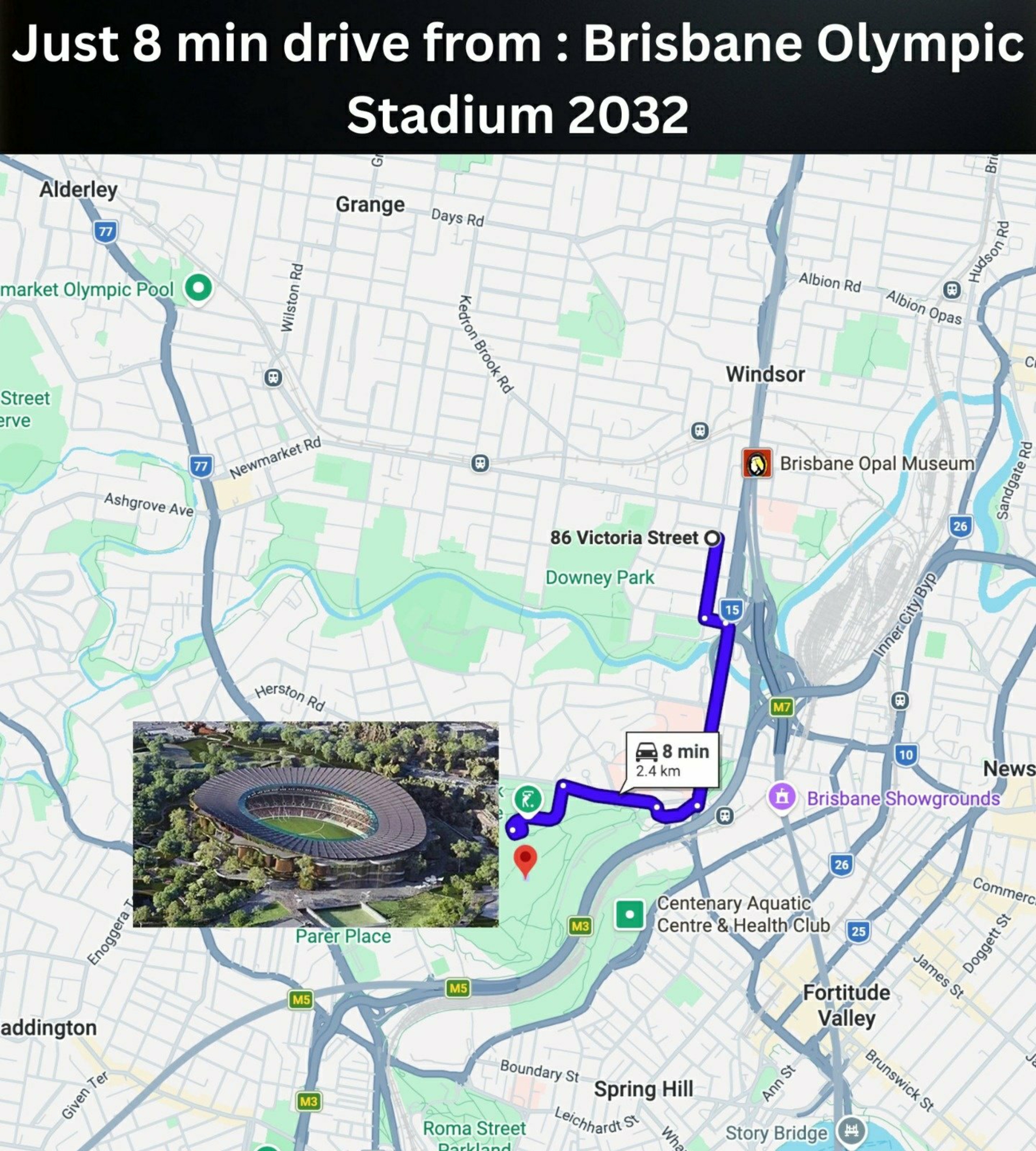 Just 8 minutes drive from the new 2032 Brisbane Olympic Stadium development,