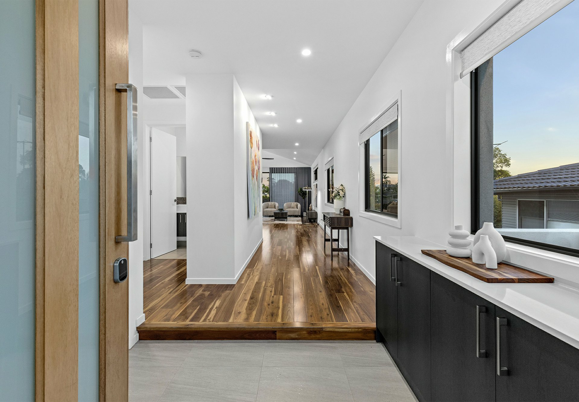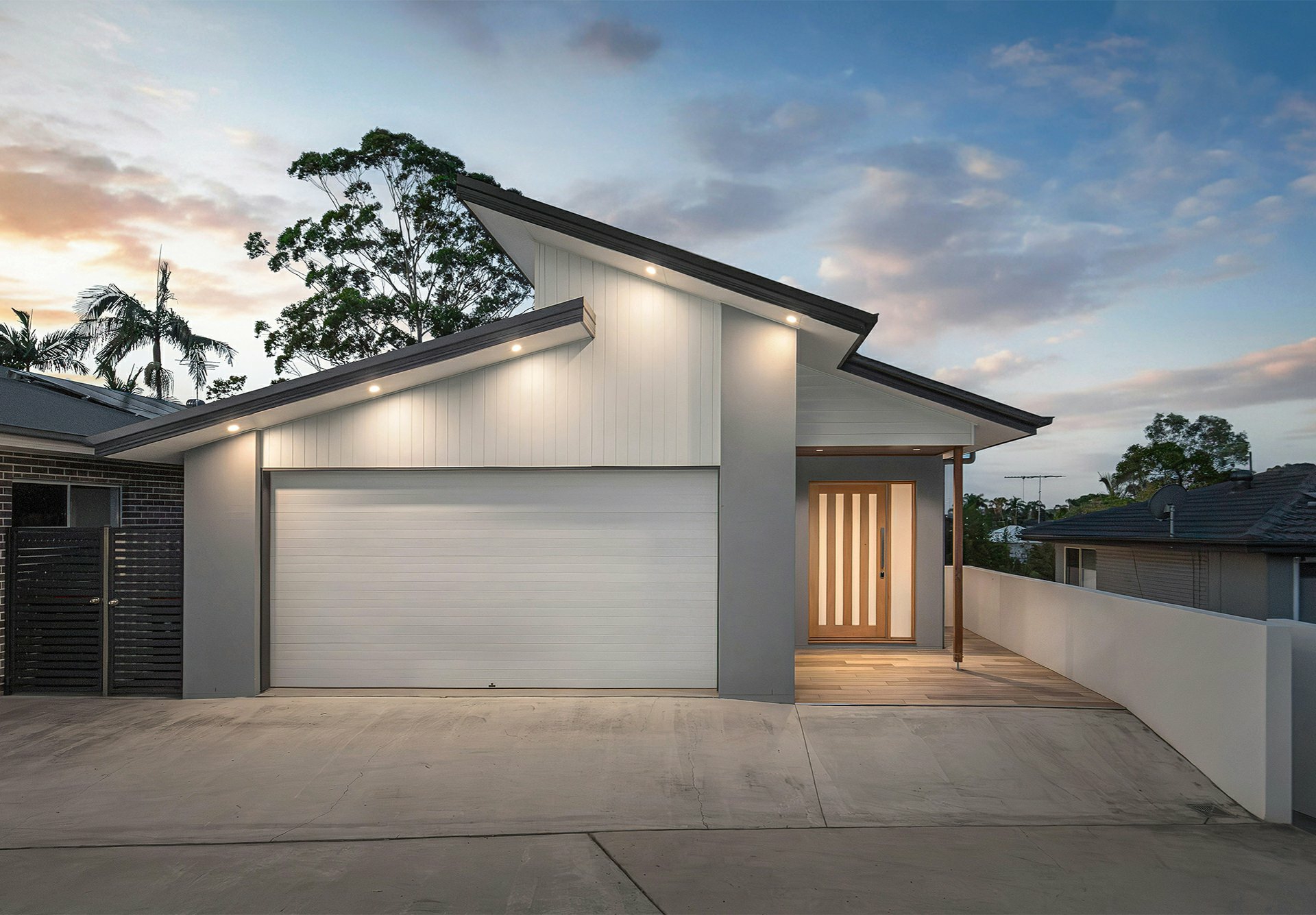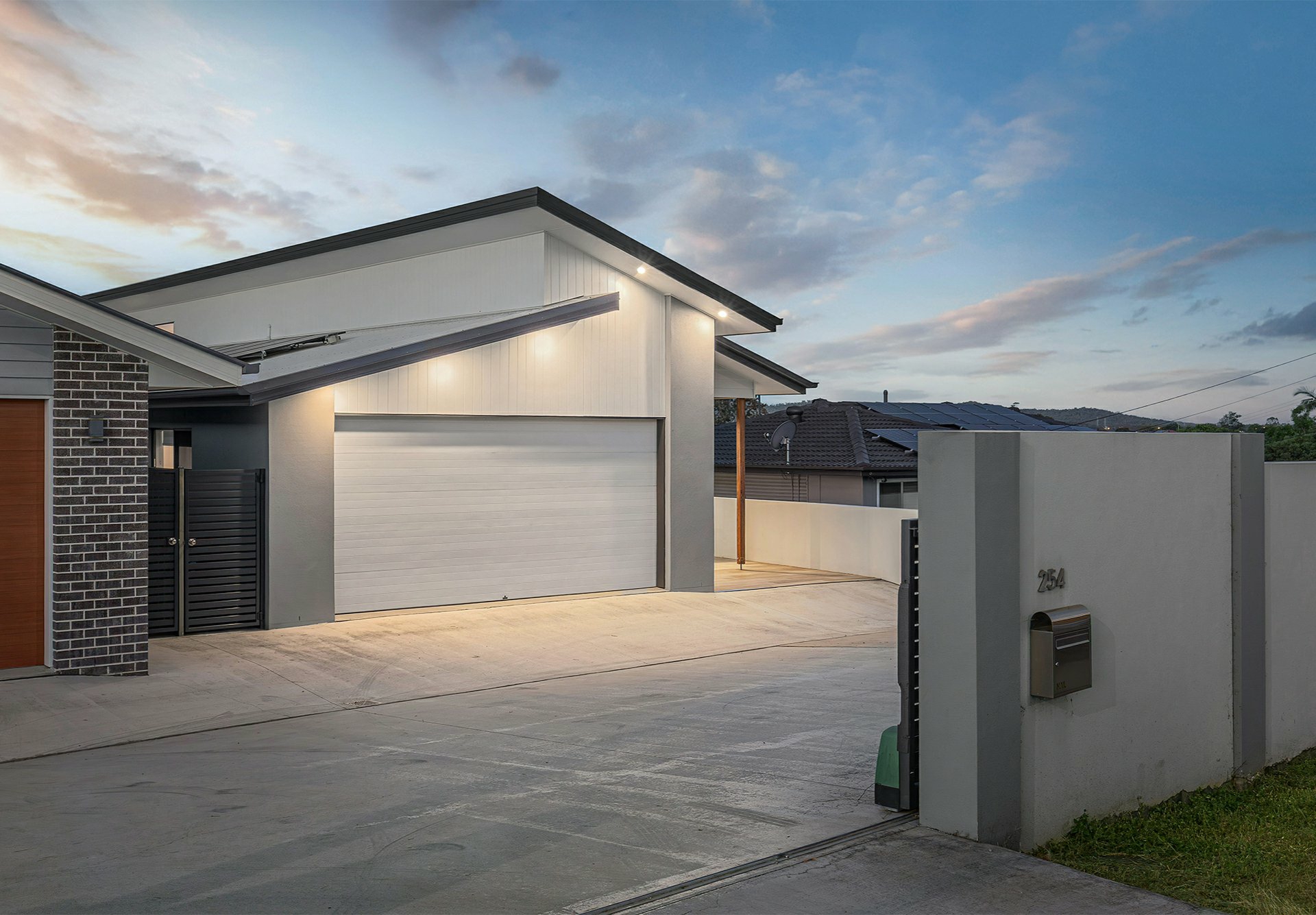 Securely positioned behind rendered fencing, an electric slider over the double driveway shared with the neighbours, this home's architectural angled roofline sets expectations high from the start - but the sumptuously appointed interior will surpass your every hope and dream!
