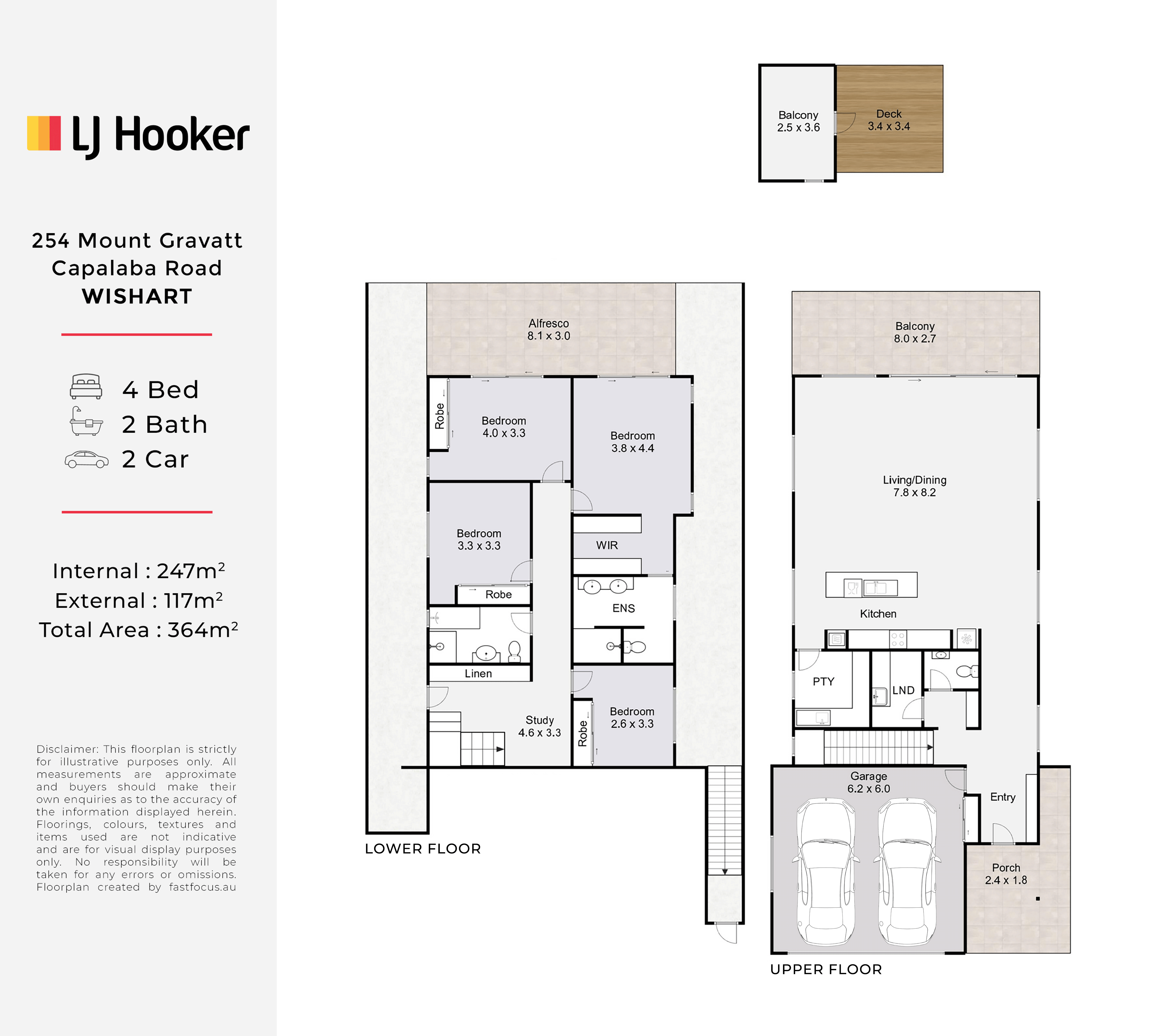 - 2 bathrooms downstairs (master ensuite has twin vanity & shower) + a powder room above