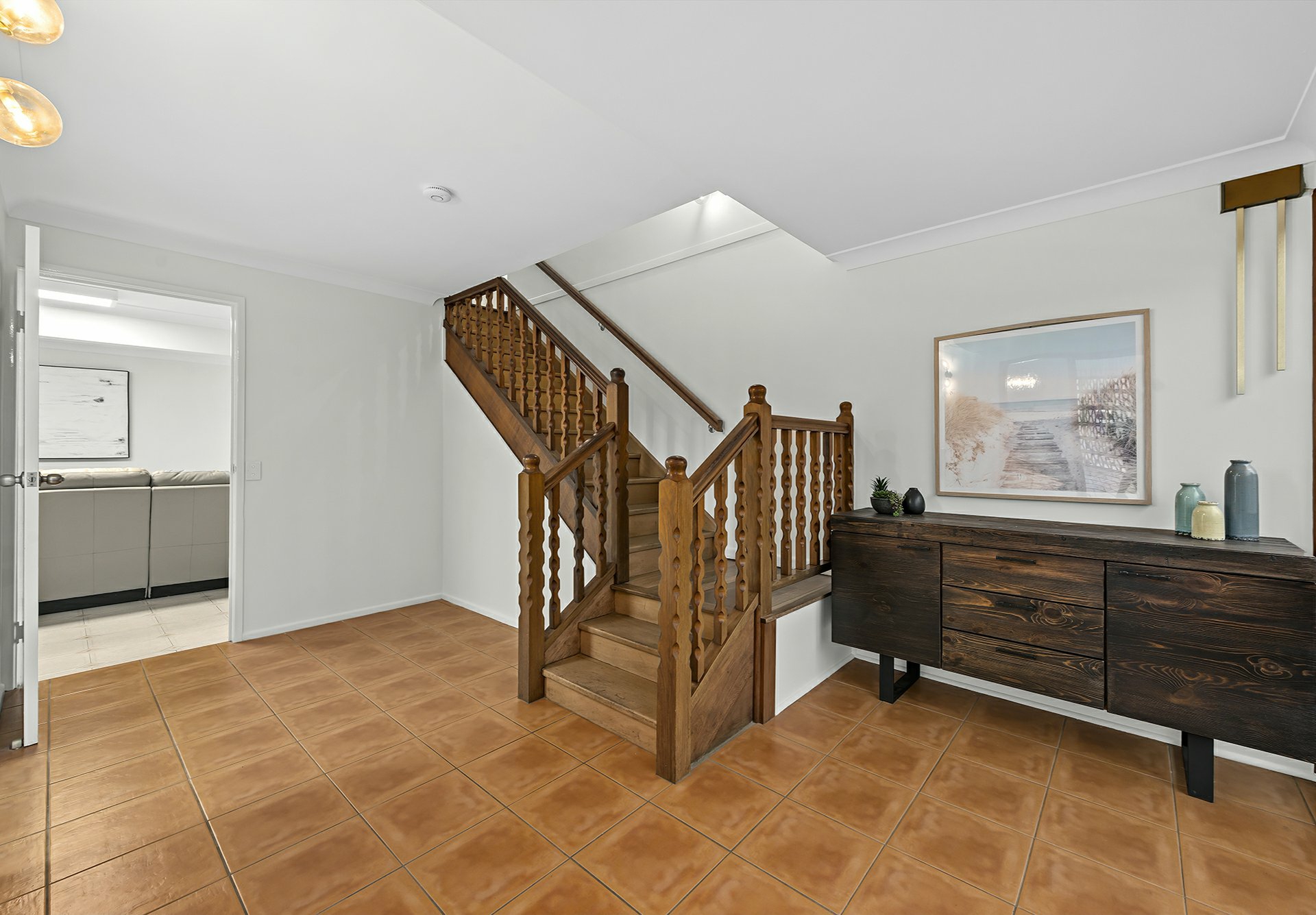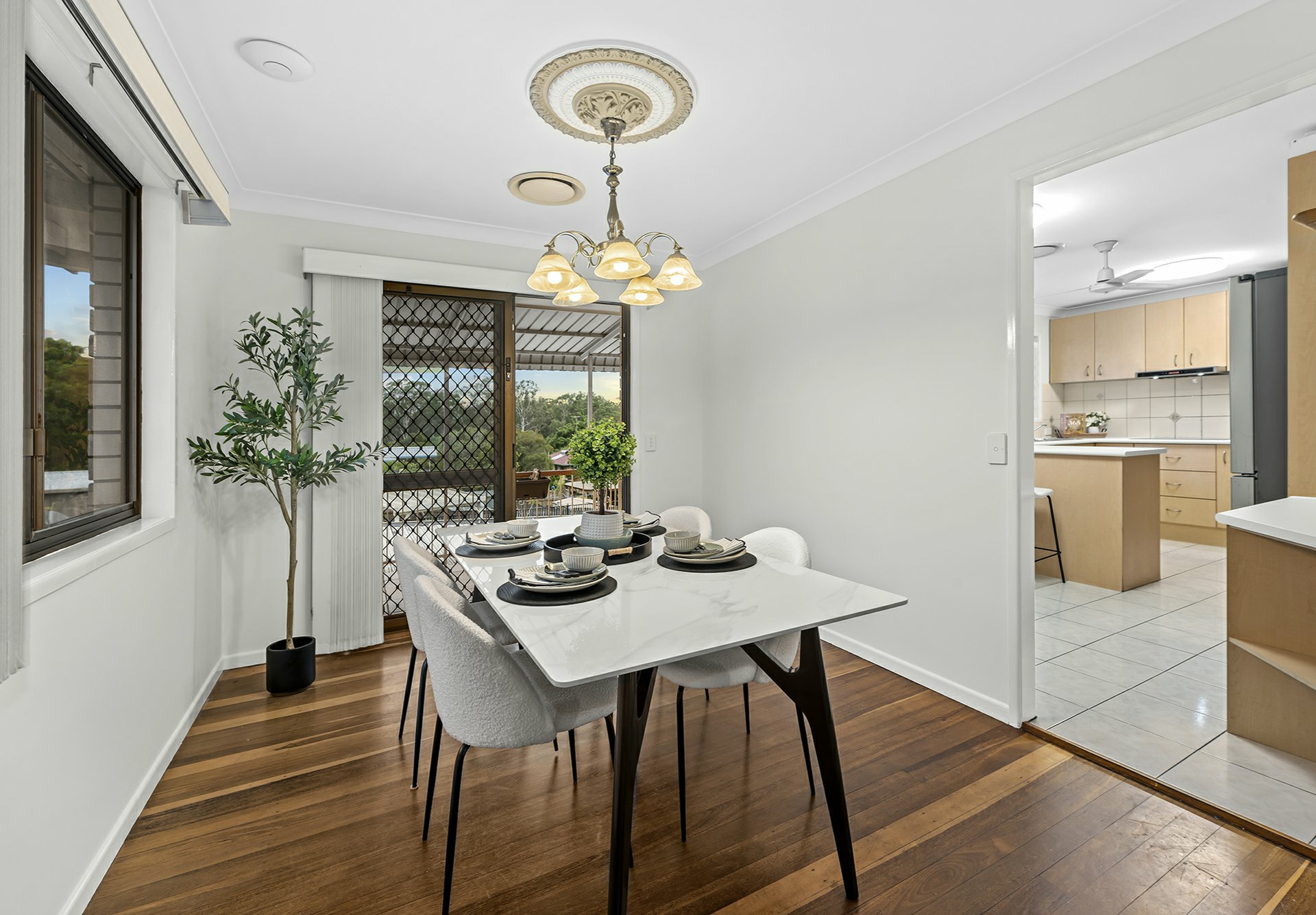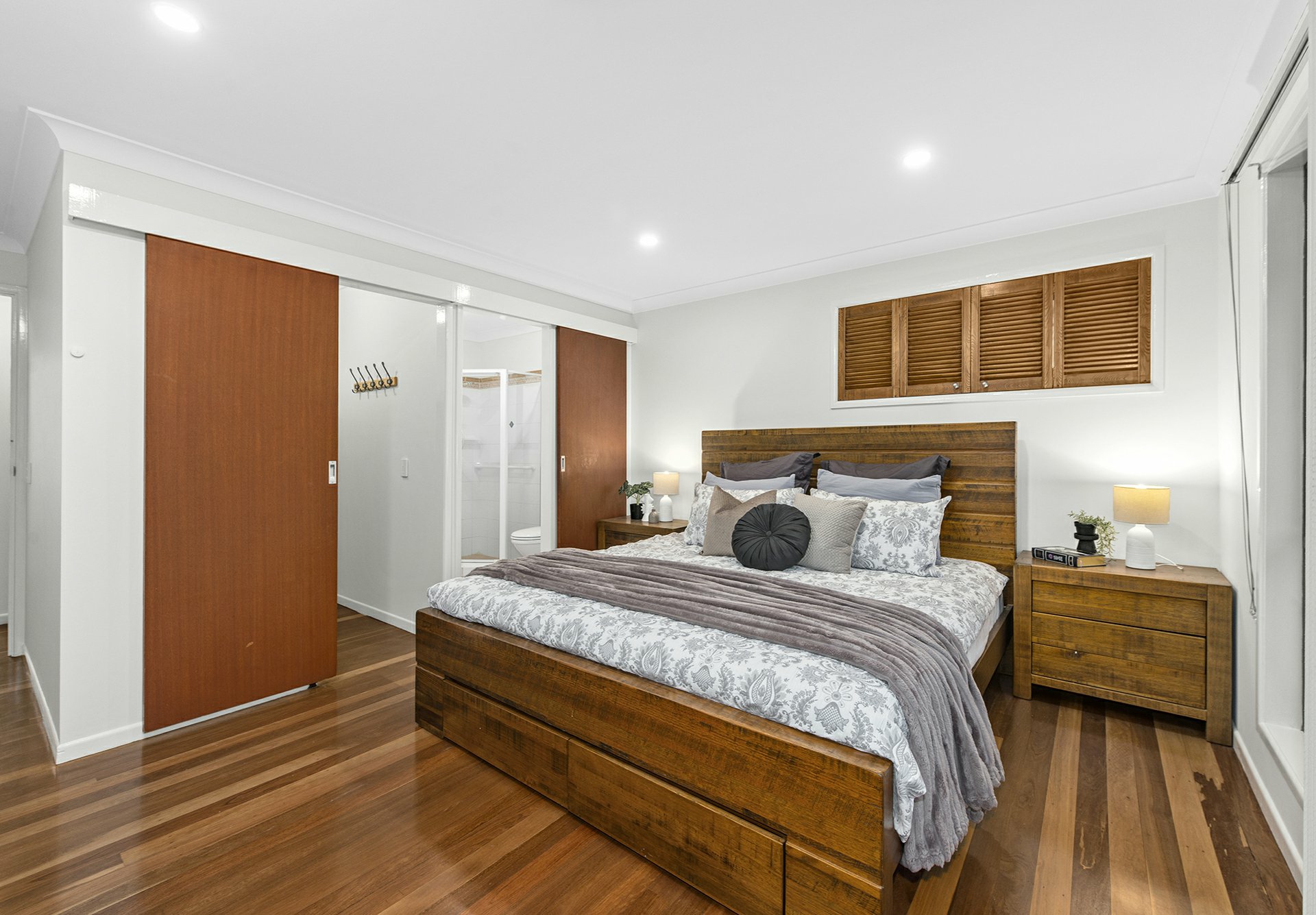 The upper level captures the essence of classic comfort, where polished timber floors lead you through a light-filled formal living room and a neat, well-equipped kitchen. Flowing seamlessly from the dining area is the rear deck, the perfect spot to enjoy elevated treetop views and cooling breezes. Three well-proportioned bedrooms, all featuring built-in robes, are serviced by a bright main bathroom, while the master suite provides a private sanctuary with its own ensuite and walk-in wardrobe.