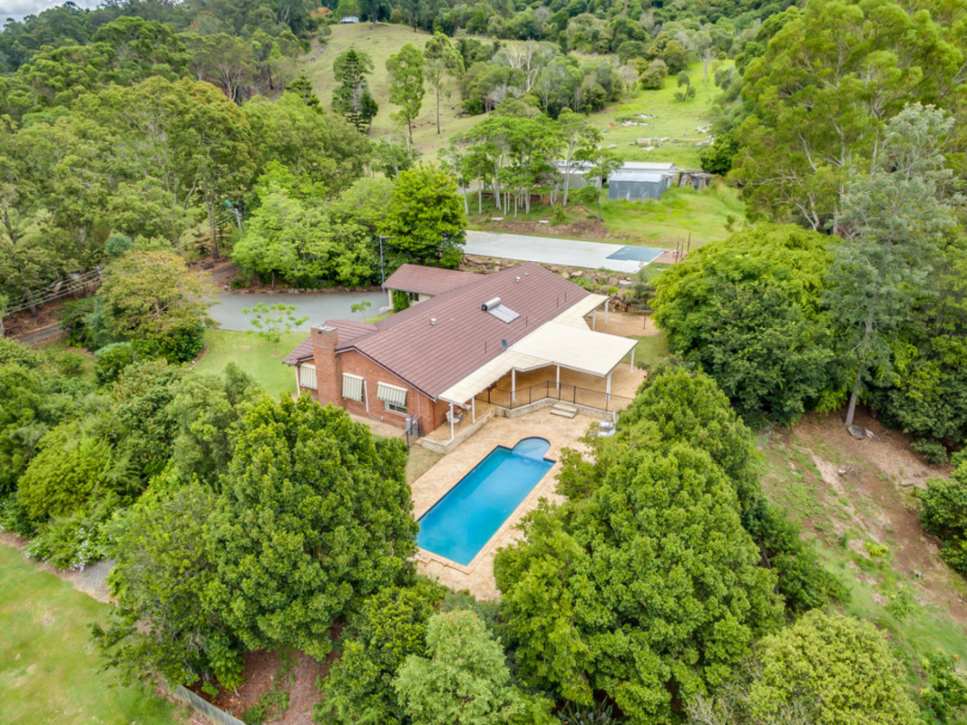 Enjoy outdoor living at its very best with a huge covered entertainment area, perfect for enjoying the lovely private garden, mountain gully and sounds of the tricking creek...a beautiful feature that also ensures water for the horses and livestock.