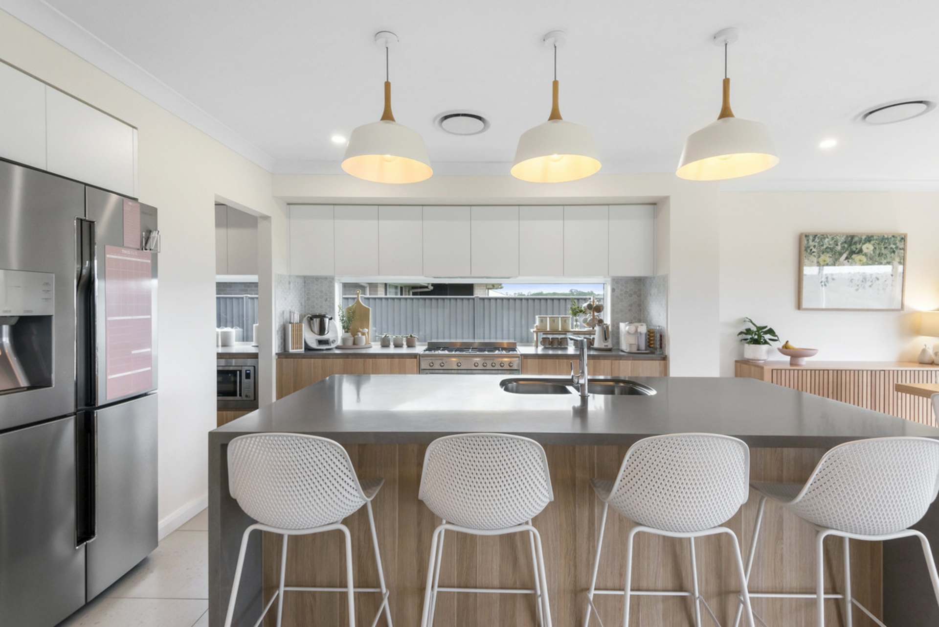 • Sleek designer kitchen, butlers pantry, stone bench tops, dishwasher, soft-close drawers, freestanding oven with gas cooking, double fridge space, large bench space ... "A chef's delight"