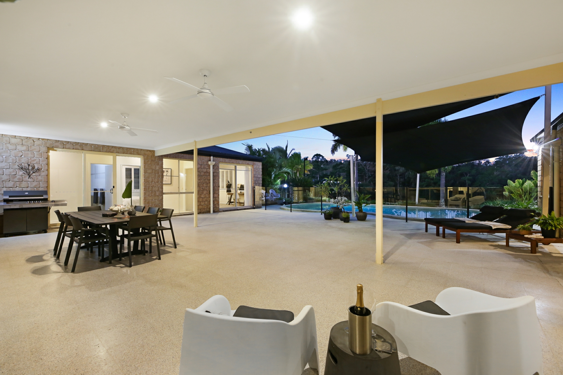 • Covered outdoor entertaining area overlooking solar-heated pool