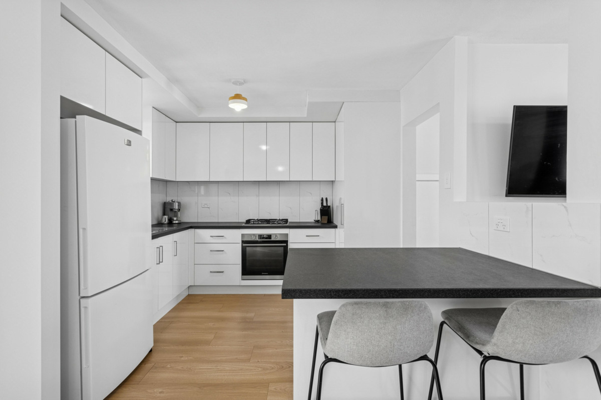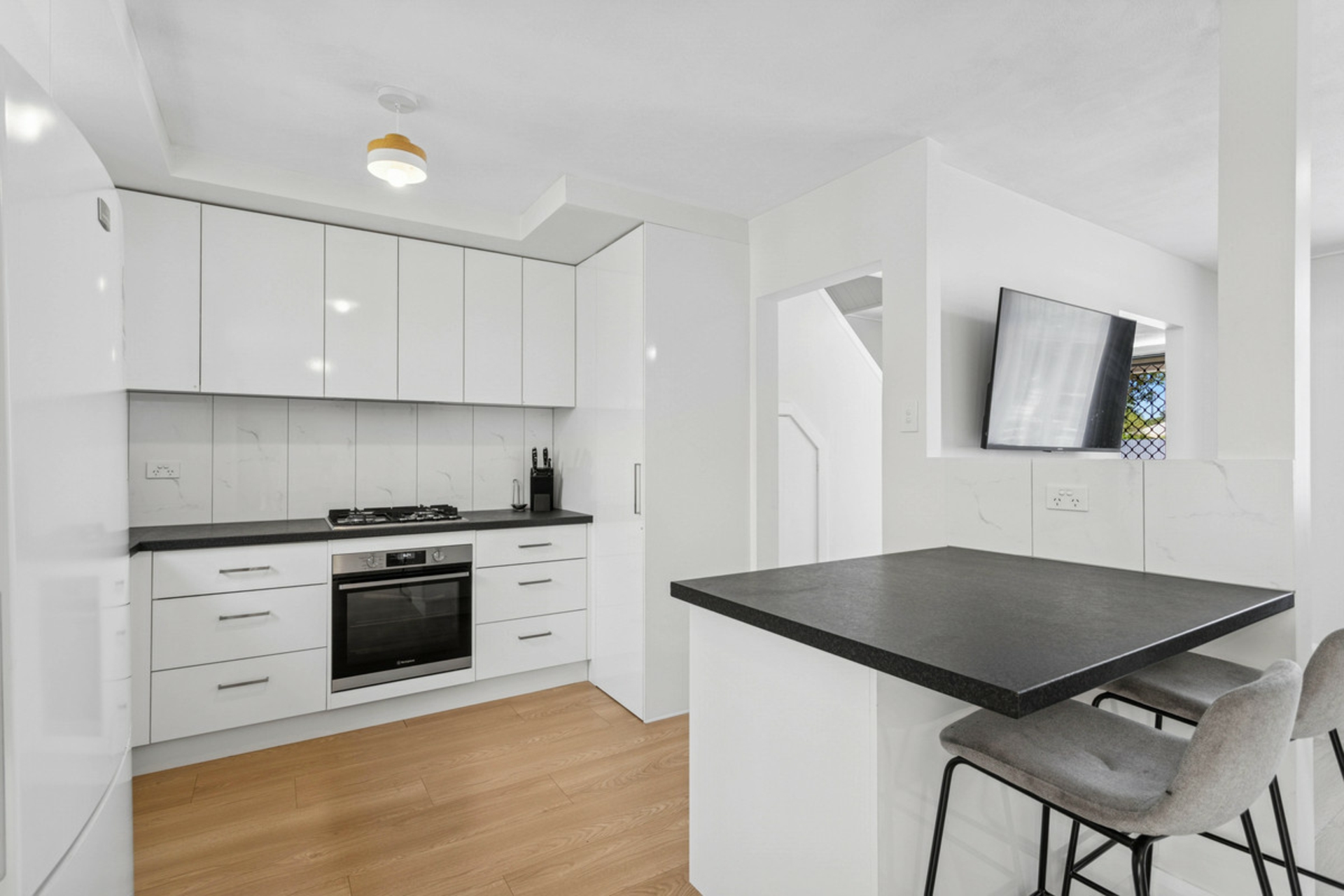 • Updated kitchen with breakfast bar, gas-cooktop, electric oven and sufficient storage