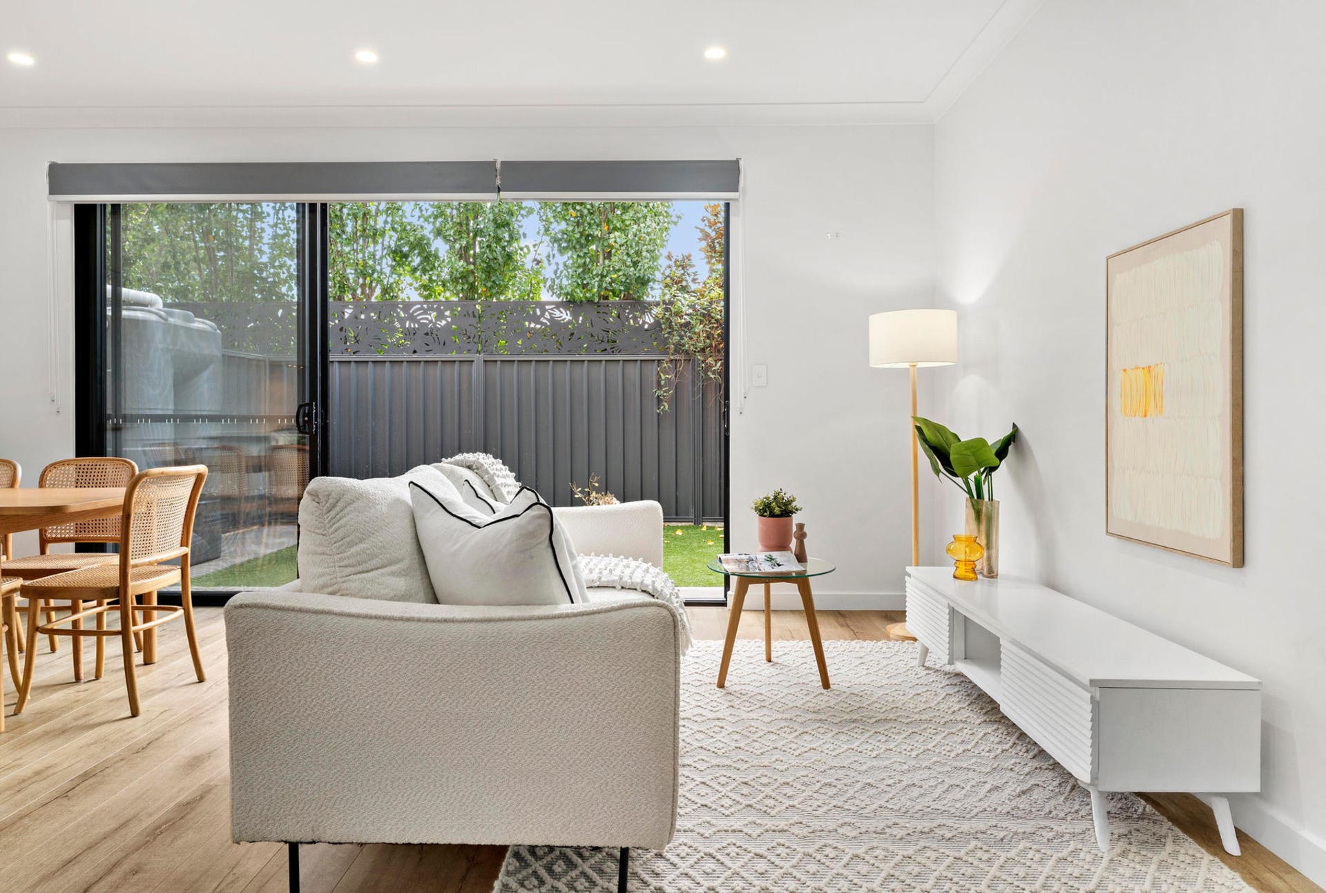 - Light filled open plan living, dining, and kitchen area