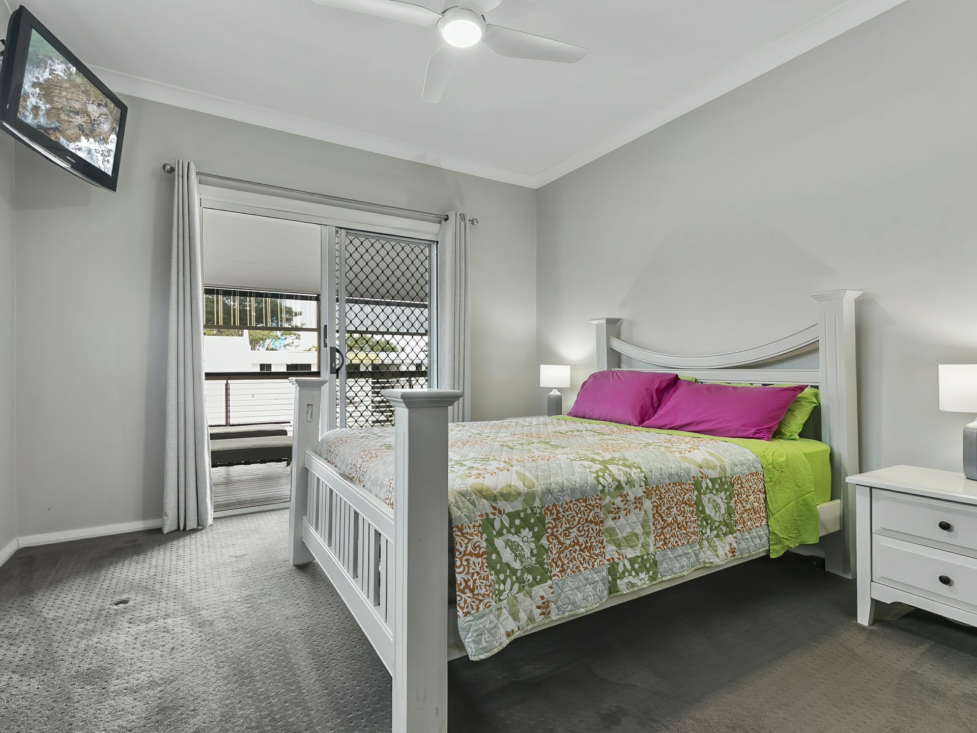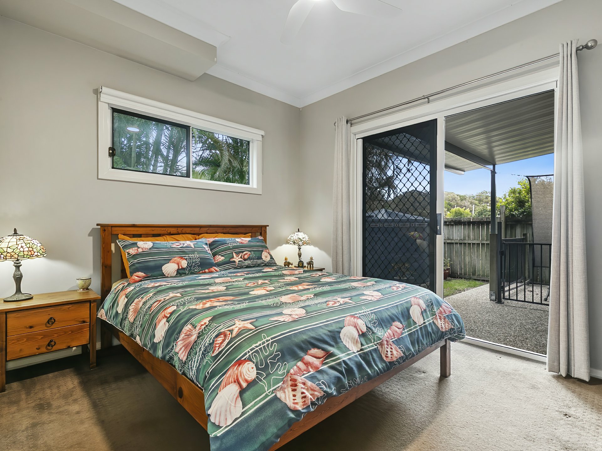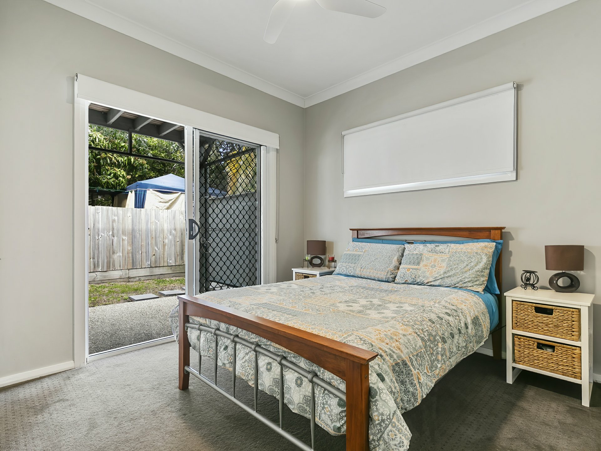 Bed 2 - Access to small rear patio - built in robes, carpet, ceiling fan, block out curtains