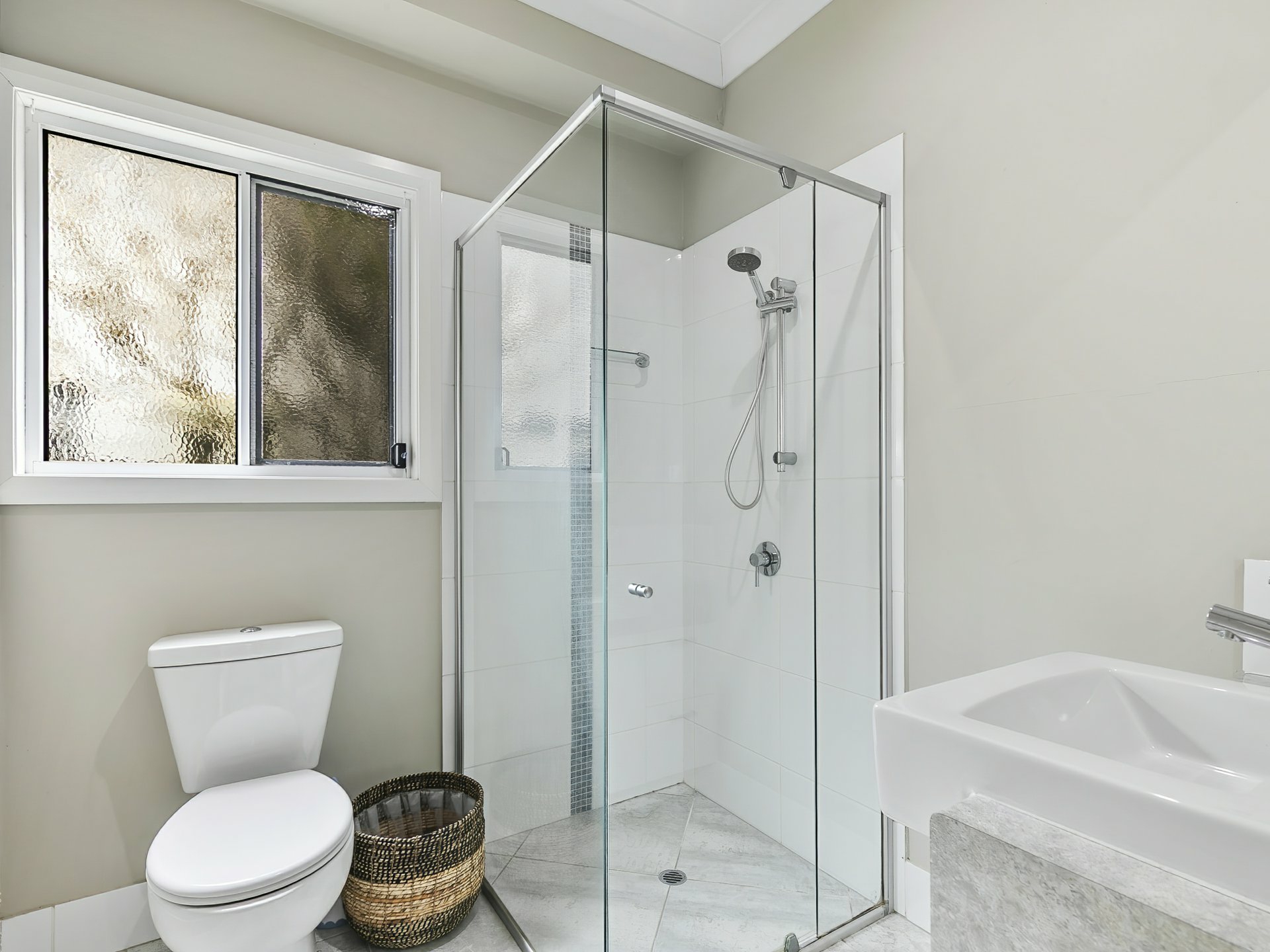 Downstairs bathroom - Tiled, Vanity, shower, toilet