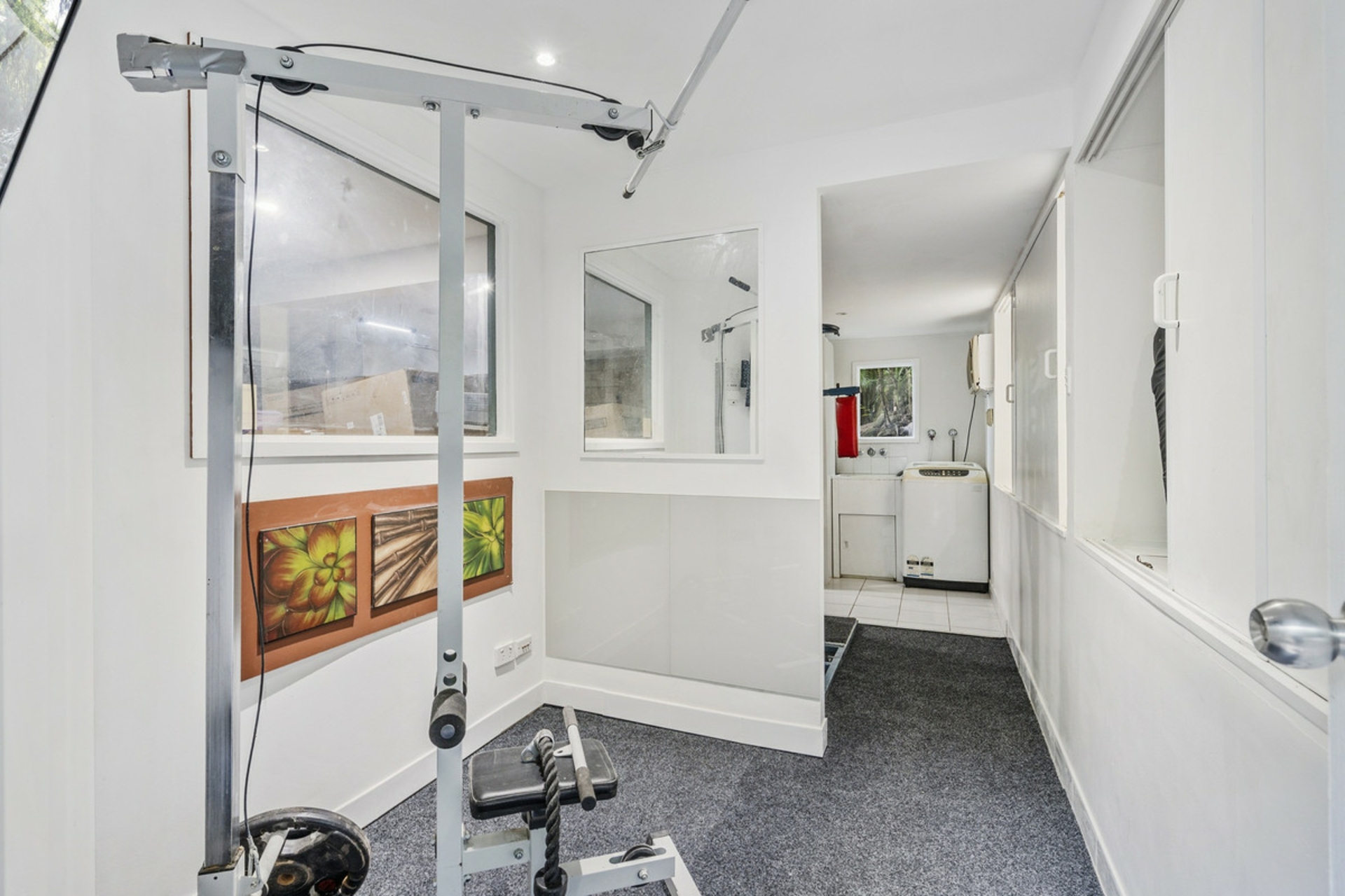 Large separate laundry and gym area