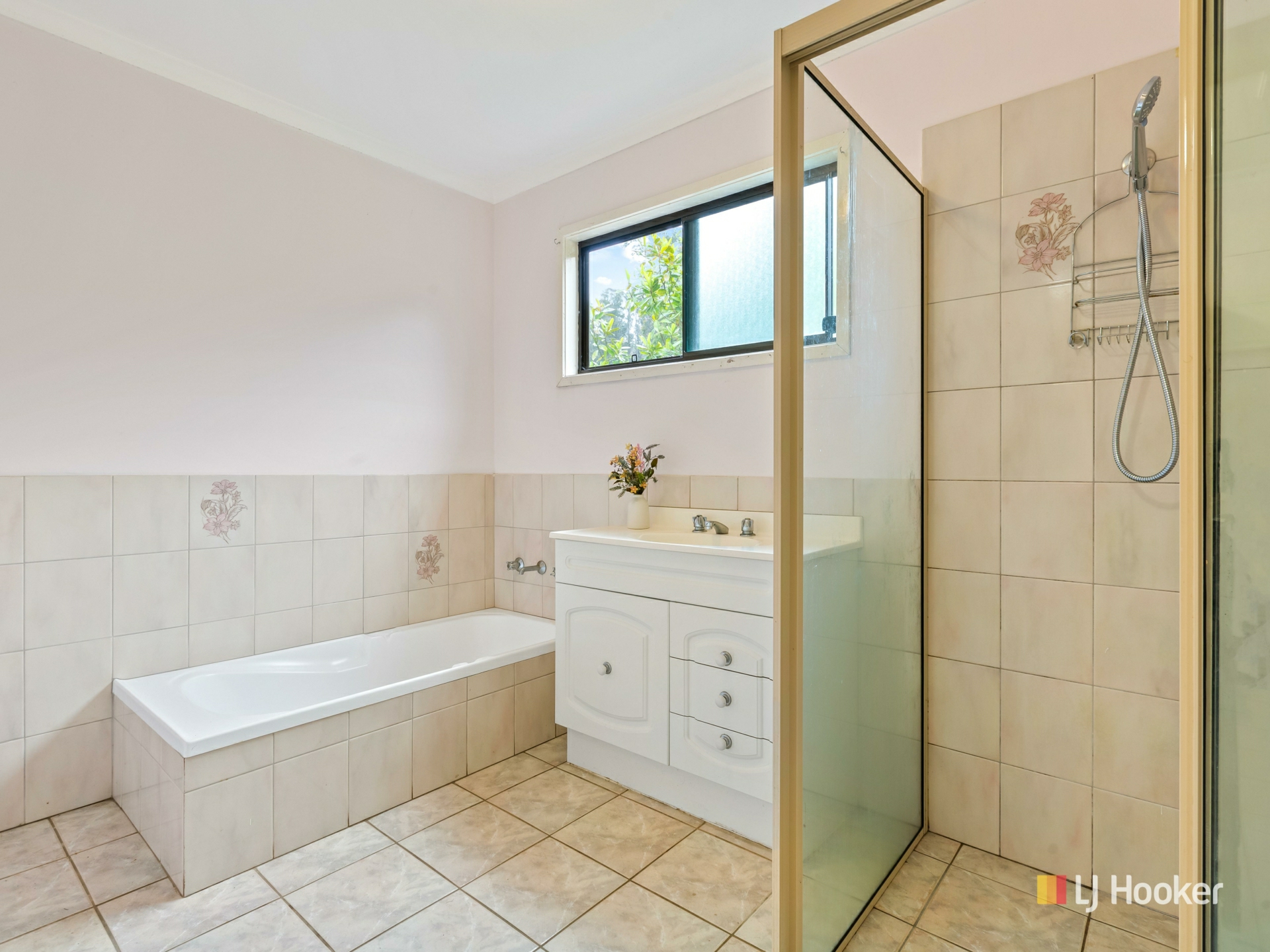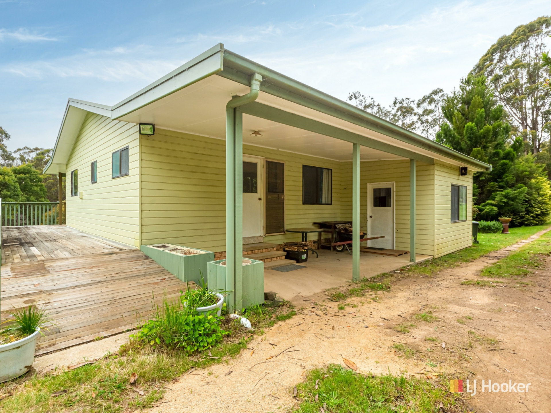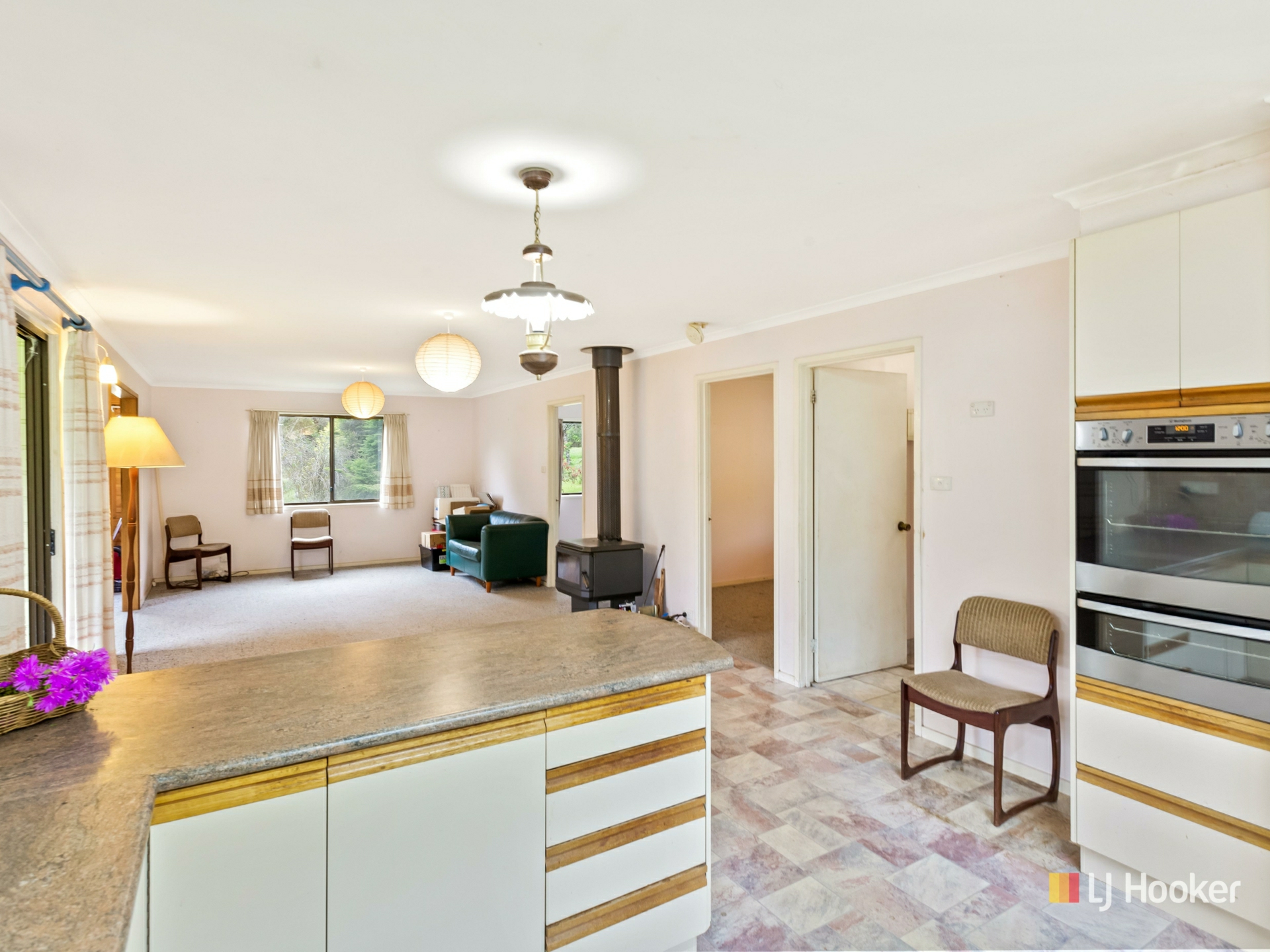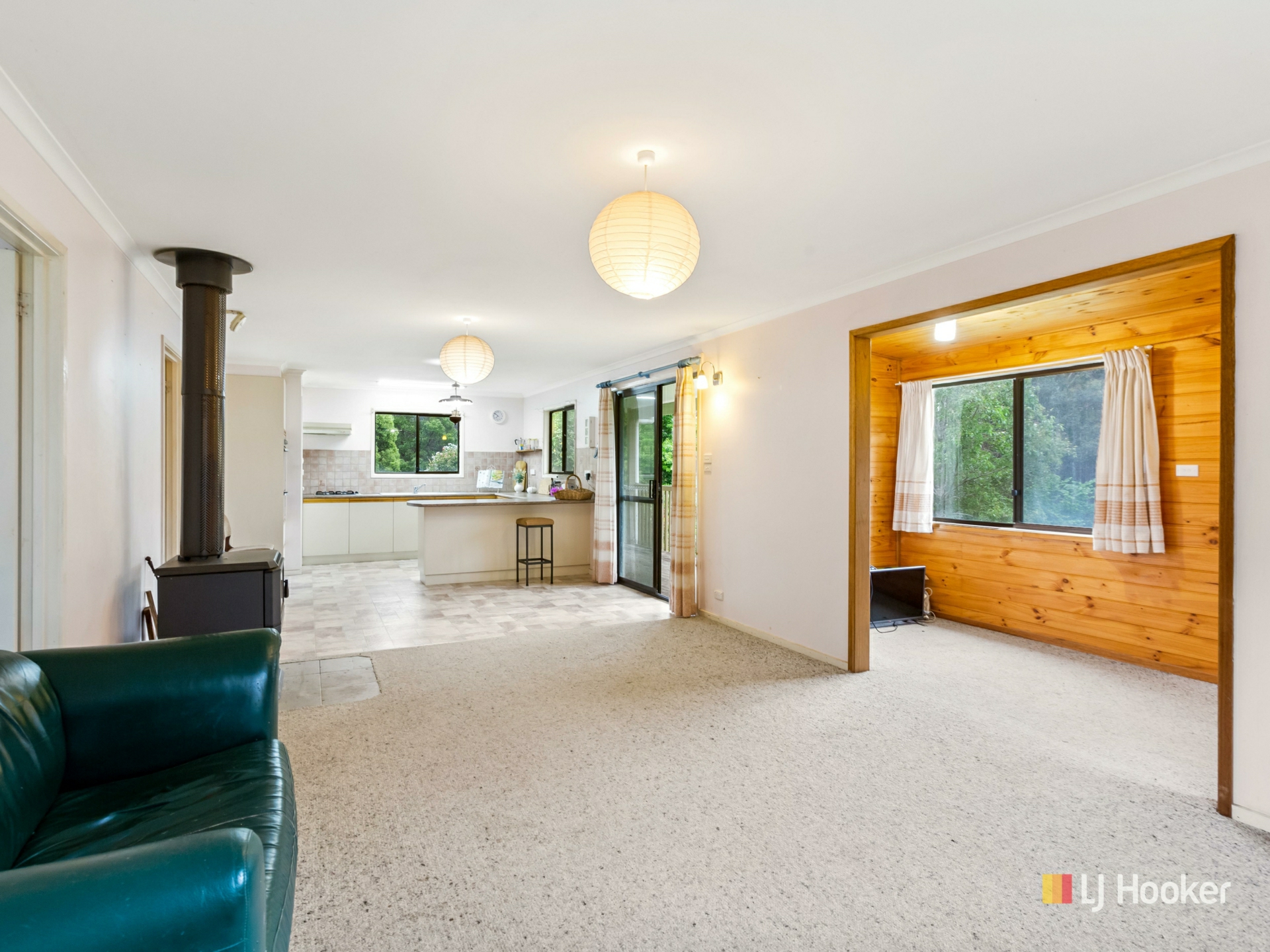 As you enter the 3-bedroom house via the undercover veranda, you'll be struck by the abundance of natural light and the large open plan living, kitchen and dining area with a separate room for a pleasant reading room or office. A woodfire heater in the living area (gas also available) will ensure the colder months are kept nice and warm throughout the house. The living area also enjoys direct access to the rear balcony, overlooking the lawns and bushland of your own property, the north aspect of this deck provides the ideal place to enjoy a meal or simply relax and take in all the natural sounds and wildlife.