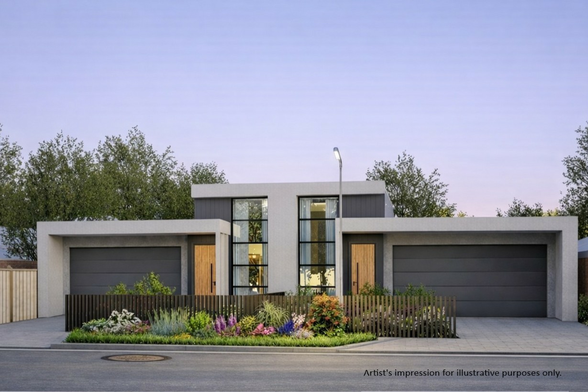 Welcome to 200 Black Forest Road, Wyndham Vale. Positioned directly across from the prestigious Harpley Estate, this exclusive offering of two architecturally designed off-the-plan residences presents an exceptional opportunity to secure a brand-new luxury home in a thriving lifestyle location. Set on generous 300m2 (approx.) allotments, each single-level residence offers approximately 20 squares of well-designed living space. Showcasing a striking contemporary facade with smooth render finishes, vertical feature cladding and expansive four-metre-high feature windows, these homes are crafted to deliver both visual impact and refined modern appeal. Each residence is further complemented by multiple living zones, a private courtyard and a double garage. Designed with modern living in mind, the layout seamlessly integrates the open-plan kitchen, meals and living areas, flowing effortlessly to the outdoor space to create an inviting setting for everyday living and entertaining.
