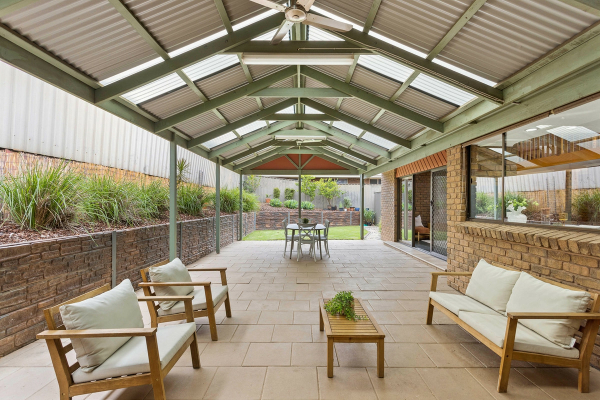 • Expansive outdoor entertaining area under a pitched pergola, perfect for all-season gatherings