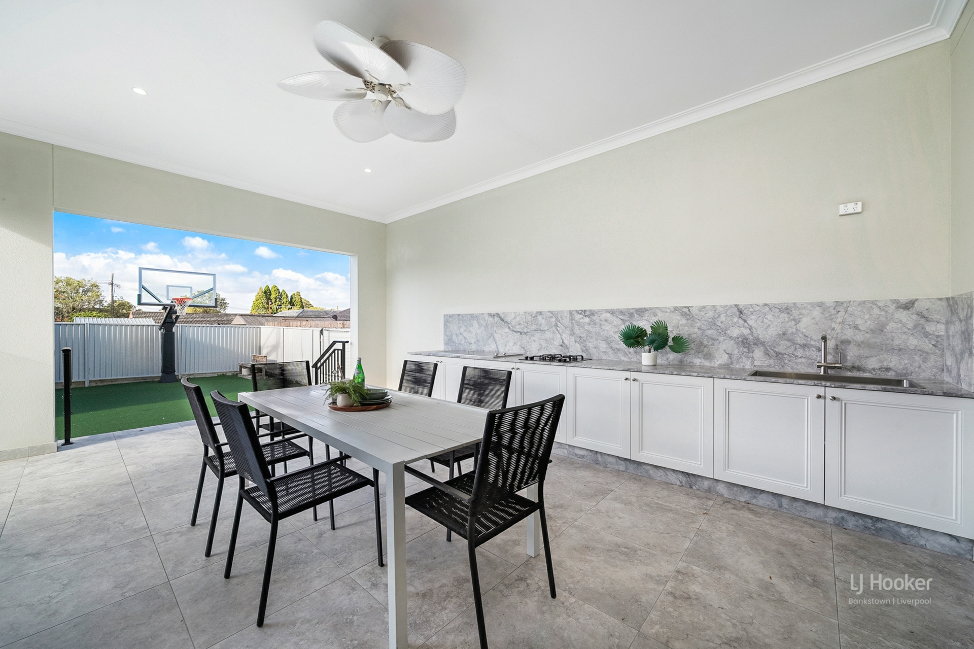 - Covered alfresco entertaining area with outdoor cooktop and barbecue