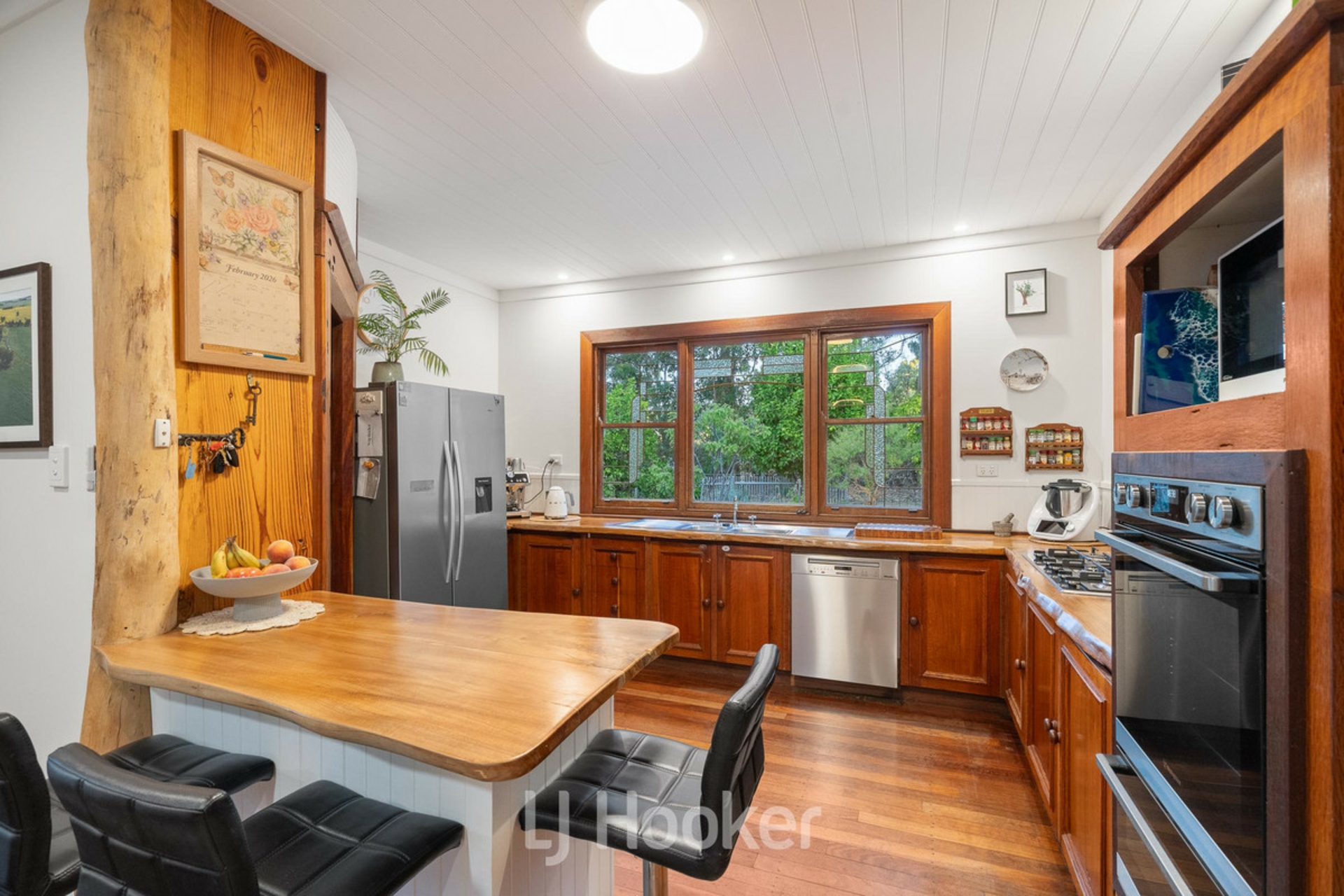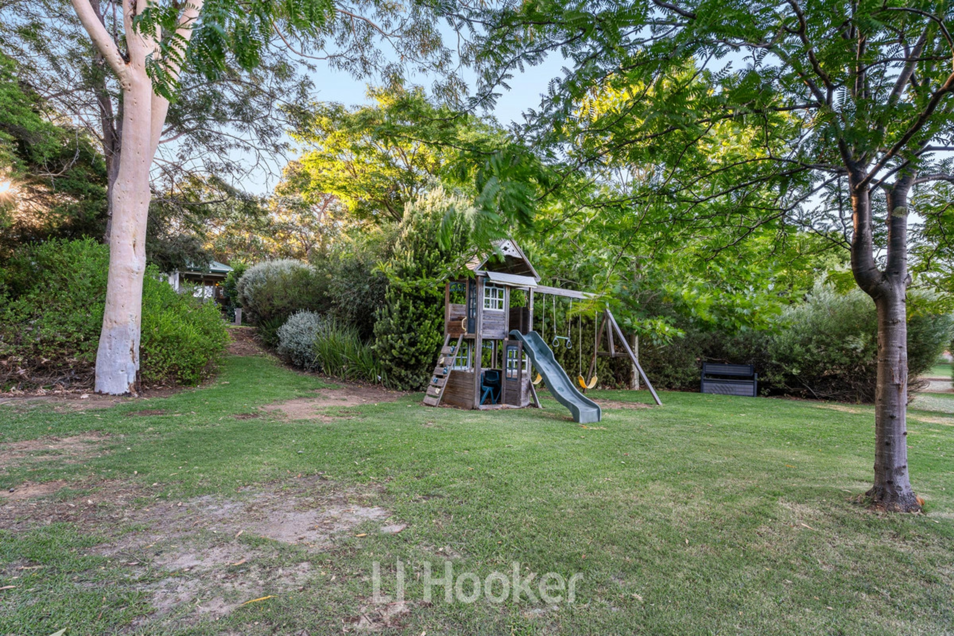 At the heart of the land sits a beautifully renovated three-bedroom, one-bathroom character home, rich in warmth and natural materials. Panelled walls, stunning jarrah floors throughout and exposed timber beams soar beneath impressive 32 course ceilings, while every room enjoys leafy outlooks across the surrounding landscape. Multiple outdoor entertaining areas invite you to slow down, follow the sun and take in the views.