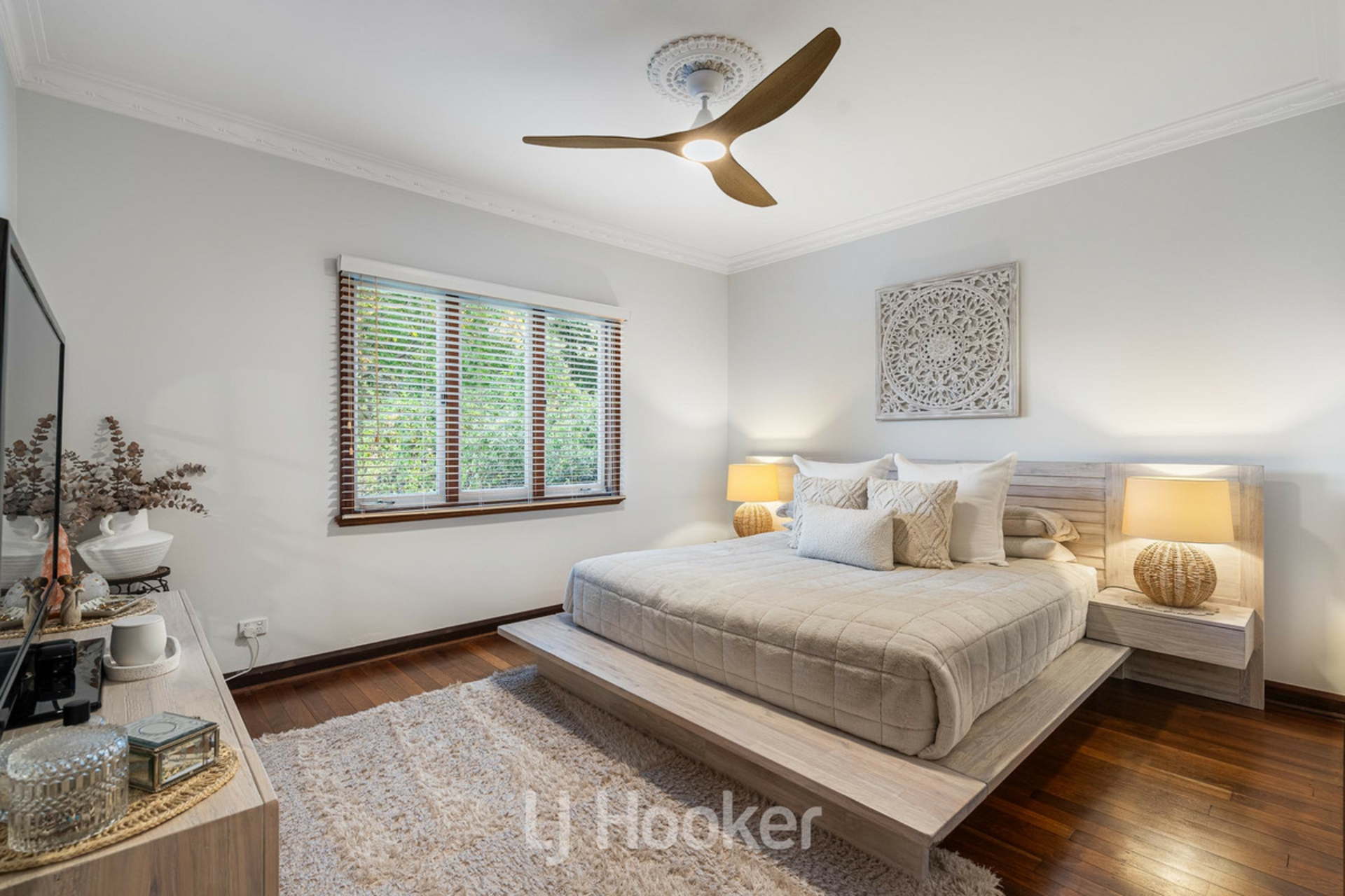 The dining room forms the central hub of the home, with soaring ceilings, split system air conditioning, ceiling fan and striking timber architraves crafted from recycled woods, including timber from the Busselton Jetty. Adjoining this space is a generous, light filled kitchen with long marri benchtops, extensive sheoak cabinetry, walk in pantry and quality appliances, large lead light windows - designed for both everyday living and entertaining.