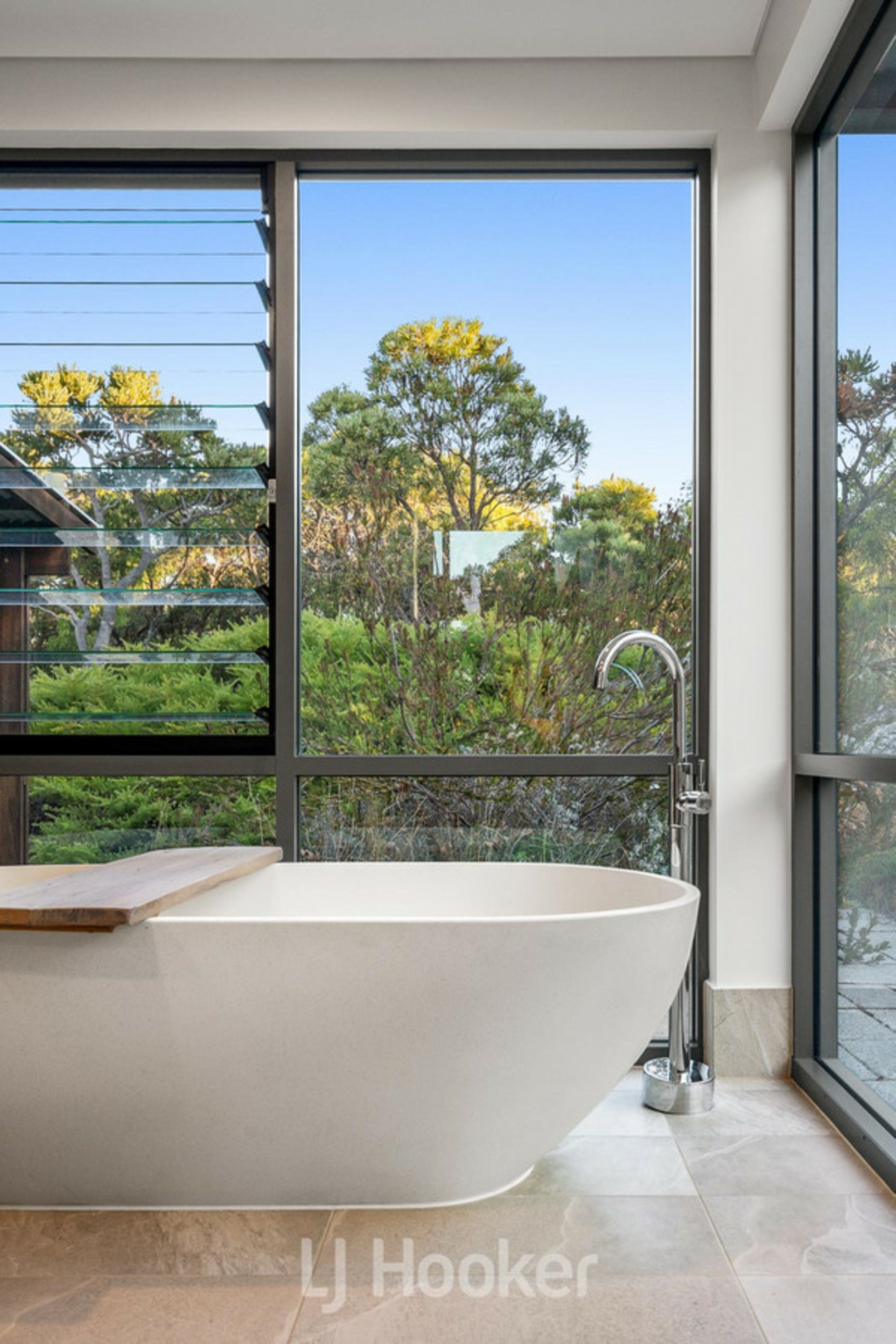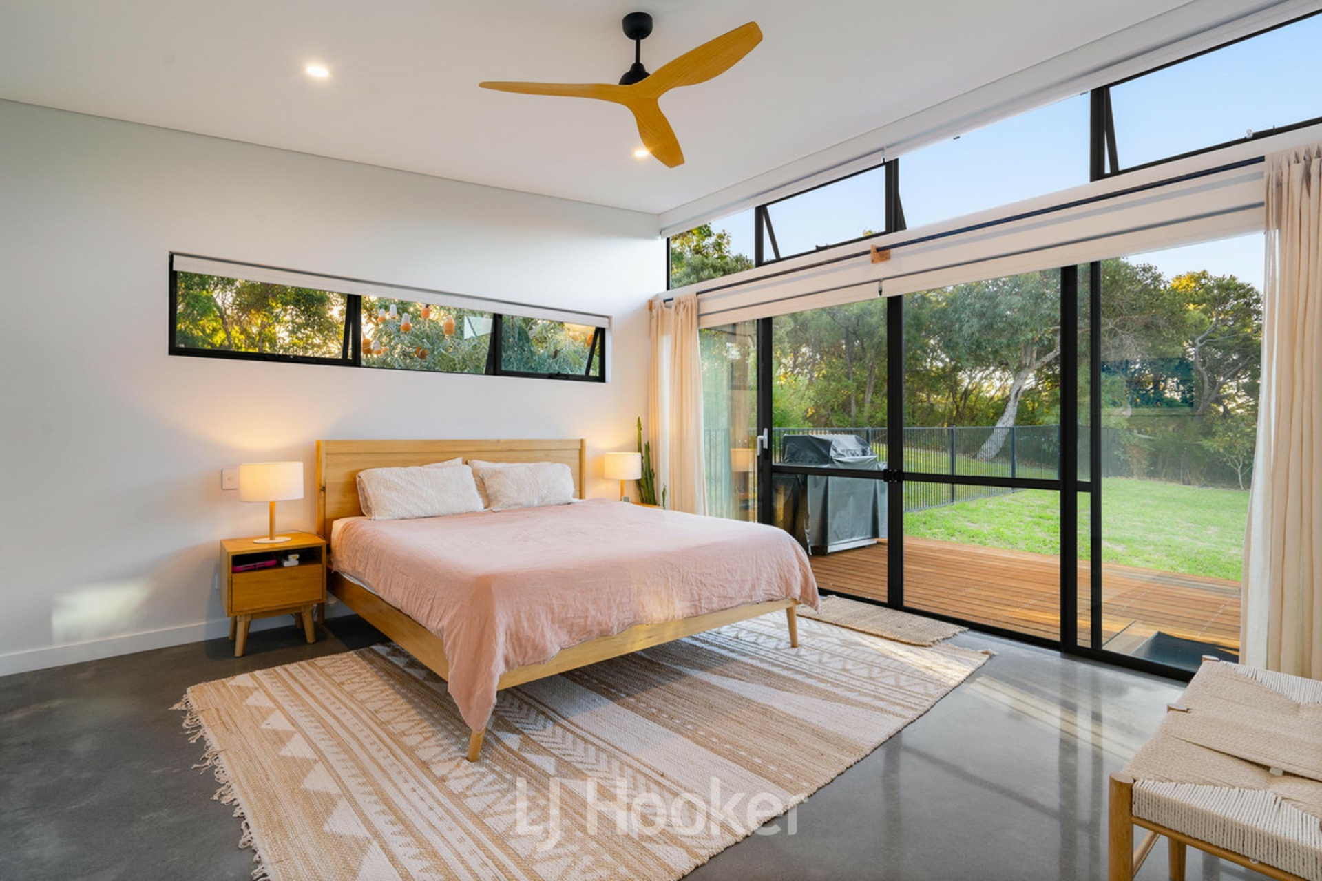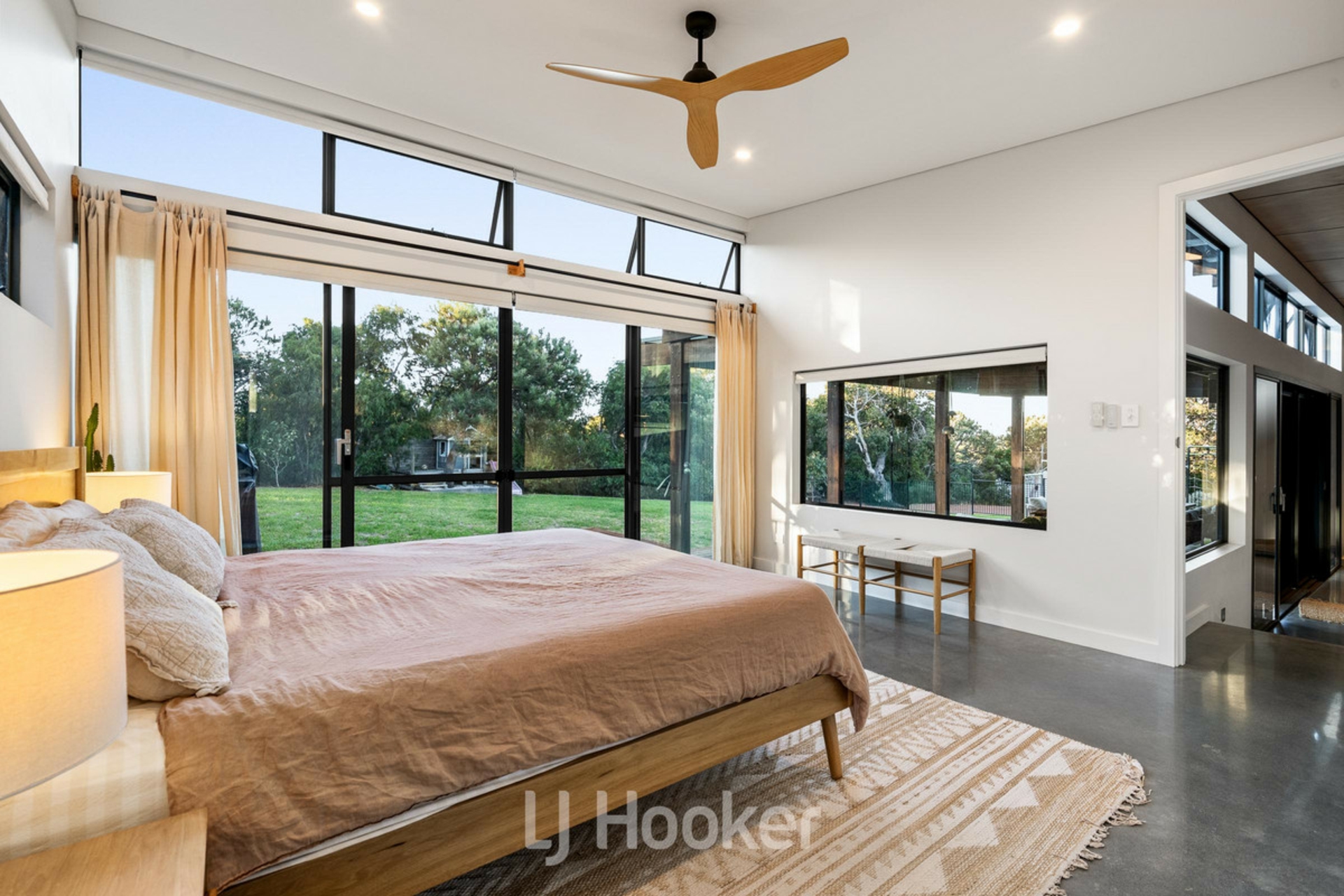The luxurious master suite is a true retreat, complete with an expansive walk in robe and an indulgent ensuite boasting a deep soaking bath. Three additional queen sized guest bedrooms are thoughtfully positioned, serviced by a spacious main bathroom and well appointed laundry.