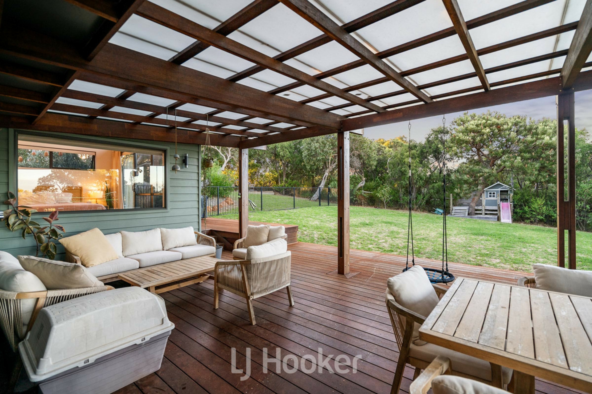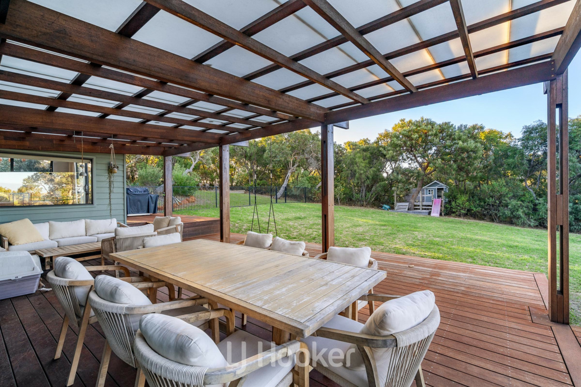 An oversized garage provides ample space for vehicles, storage or lifestyle equipment, adding further practicality to the property's thoughtful design.