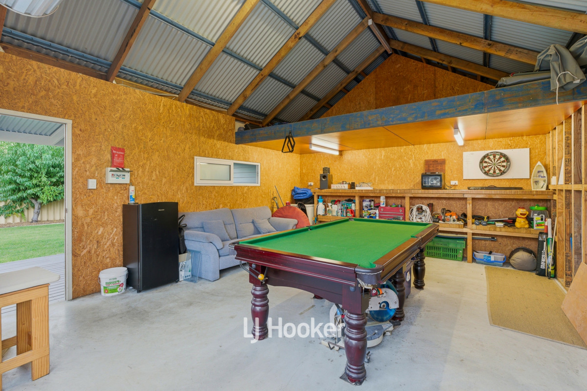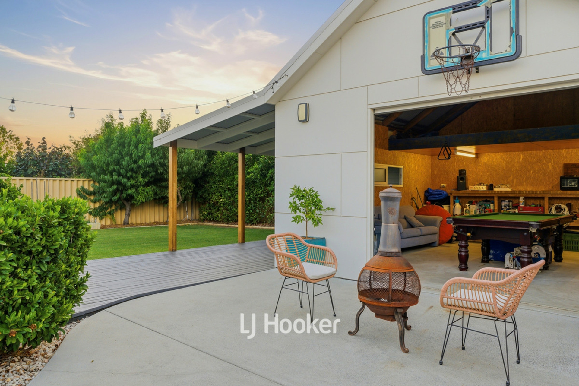 Outdoors, the home continues to impress with a covered decked alfresco featuring a striking ceiling detail, creating a comfortable space for year-round entertaining. The powered shed with mezzanine offers excellent storage or workshop potential, with convenient access via the garage and side driveway, ideal for securely parking a 4WD, trailer, or creating the ultimate man cave. Reticulated gardens and a solar panel system help keep ongoing maintenance and power costs low, adding further appeal for families and investors alike.