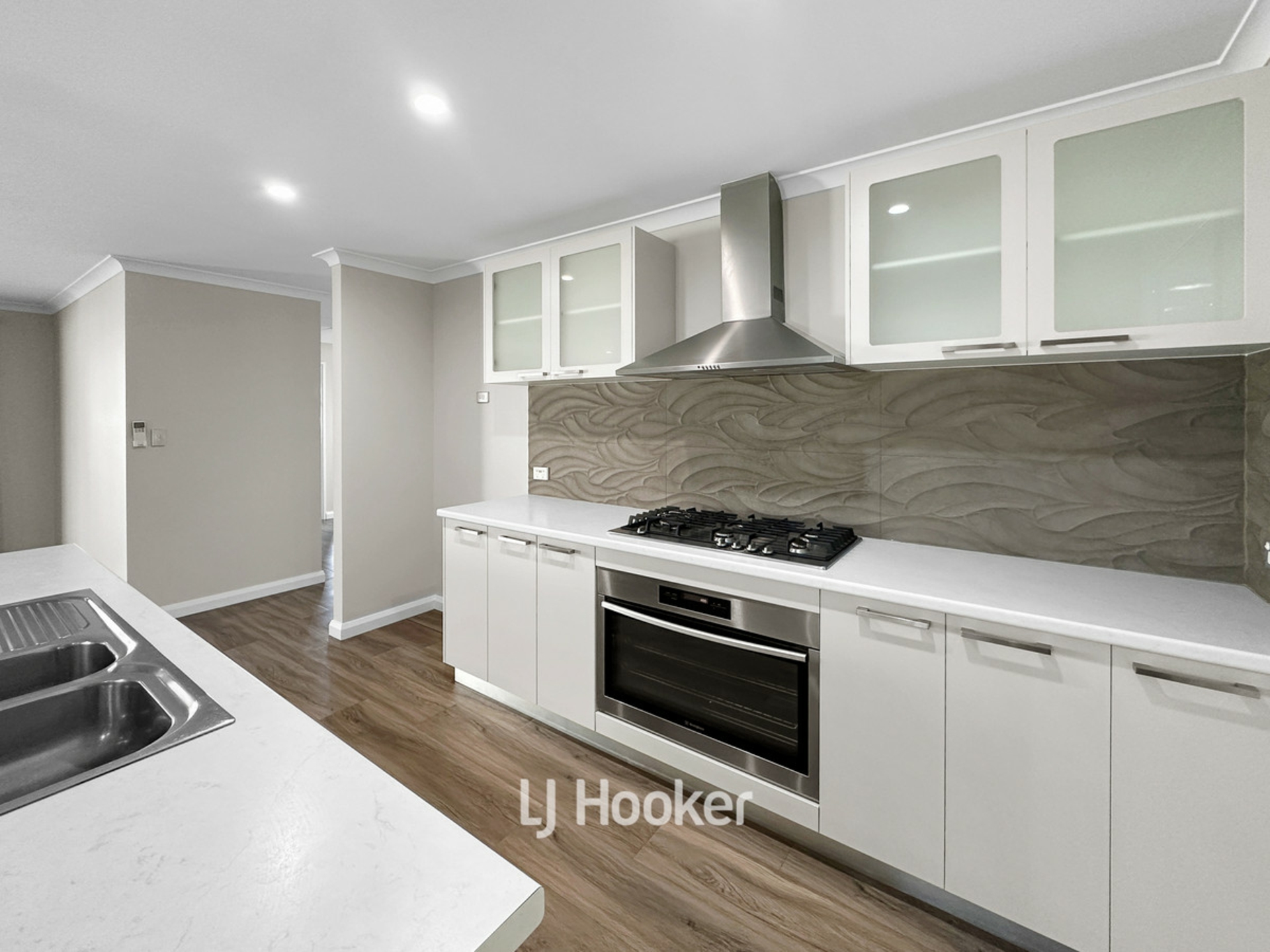 Step inside to two spacious living areas, including a dedicated theatre room that invites family movie nights and gatherings. The modern kitchen is equipped with a 900mm electric oven, gas cooktop, rangehood, and a spacious walk-in pantry, paired with easy-care vinyl plank flooring. The adjoining family and dining zones benefit from split-system air conditioning, ensuring year-round comfort.