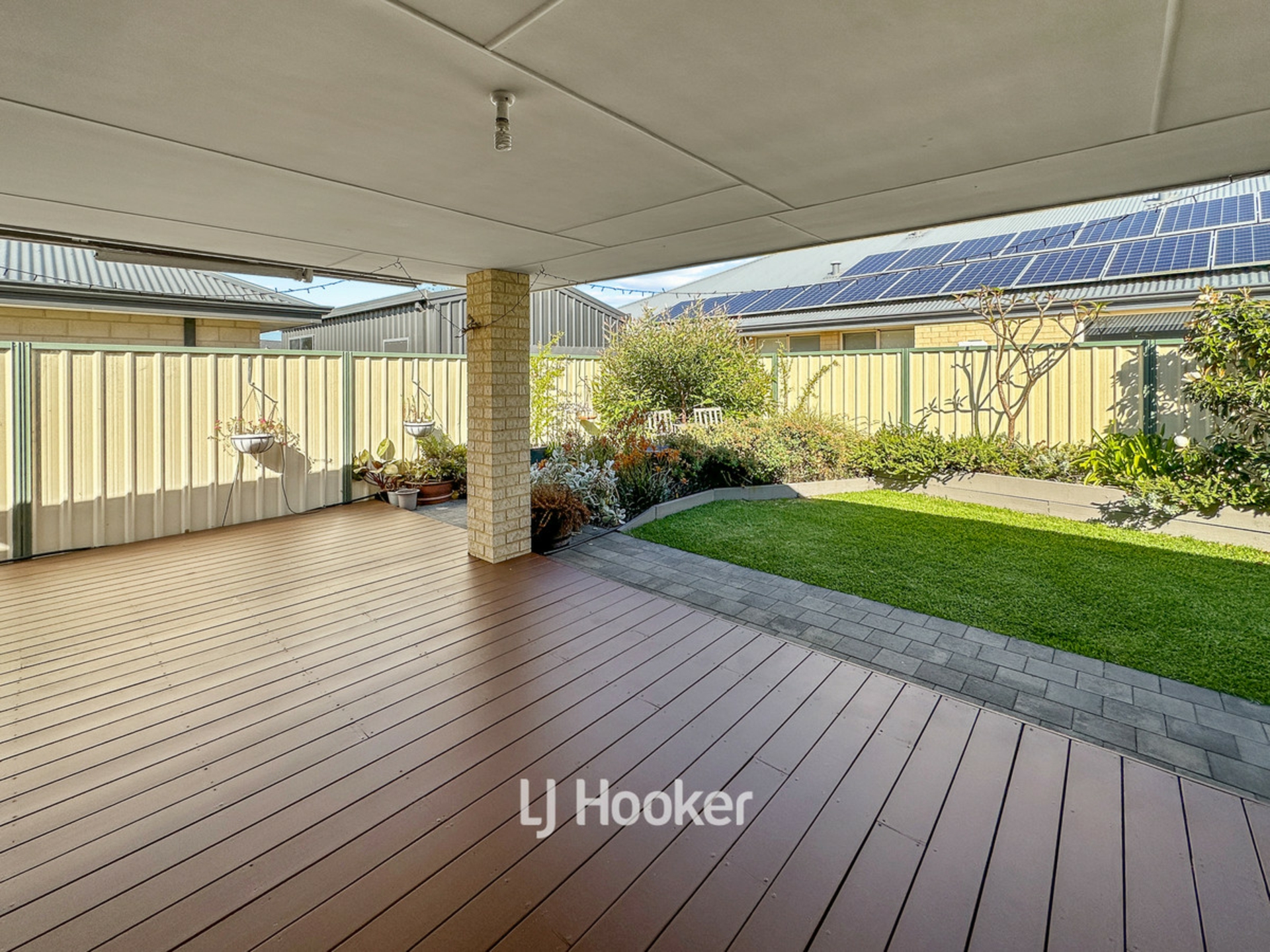 Outdoor entertaining with alfresco area featuring retractable overhead blind and decking down the north side