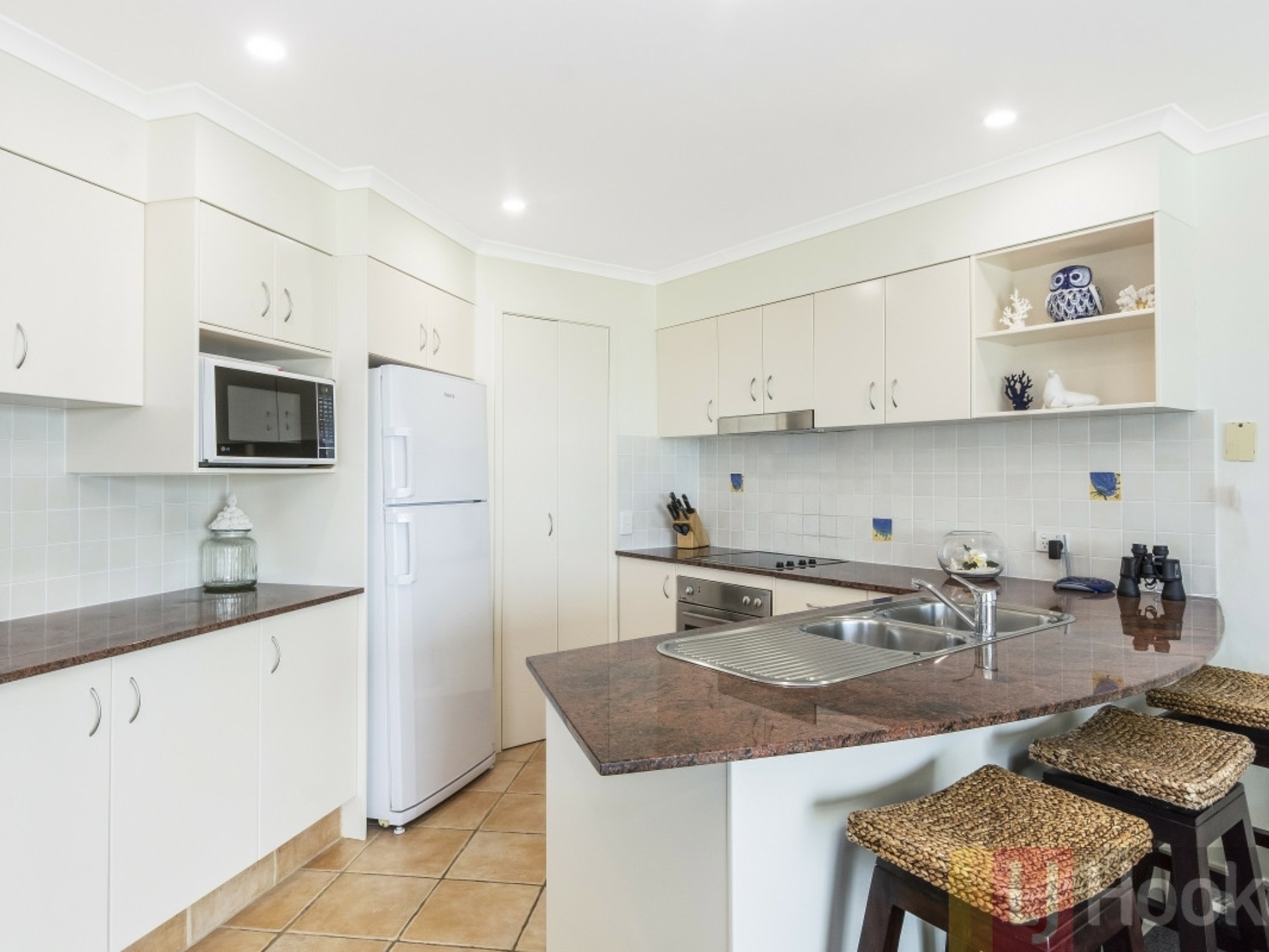 - Gourmet kitchen with timber and stone bench
